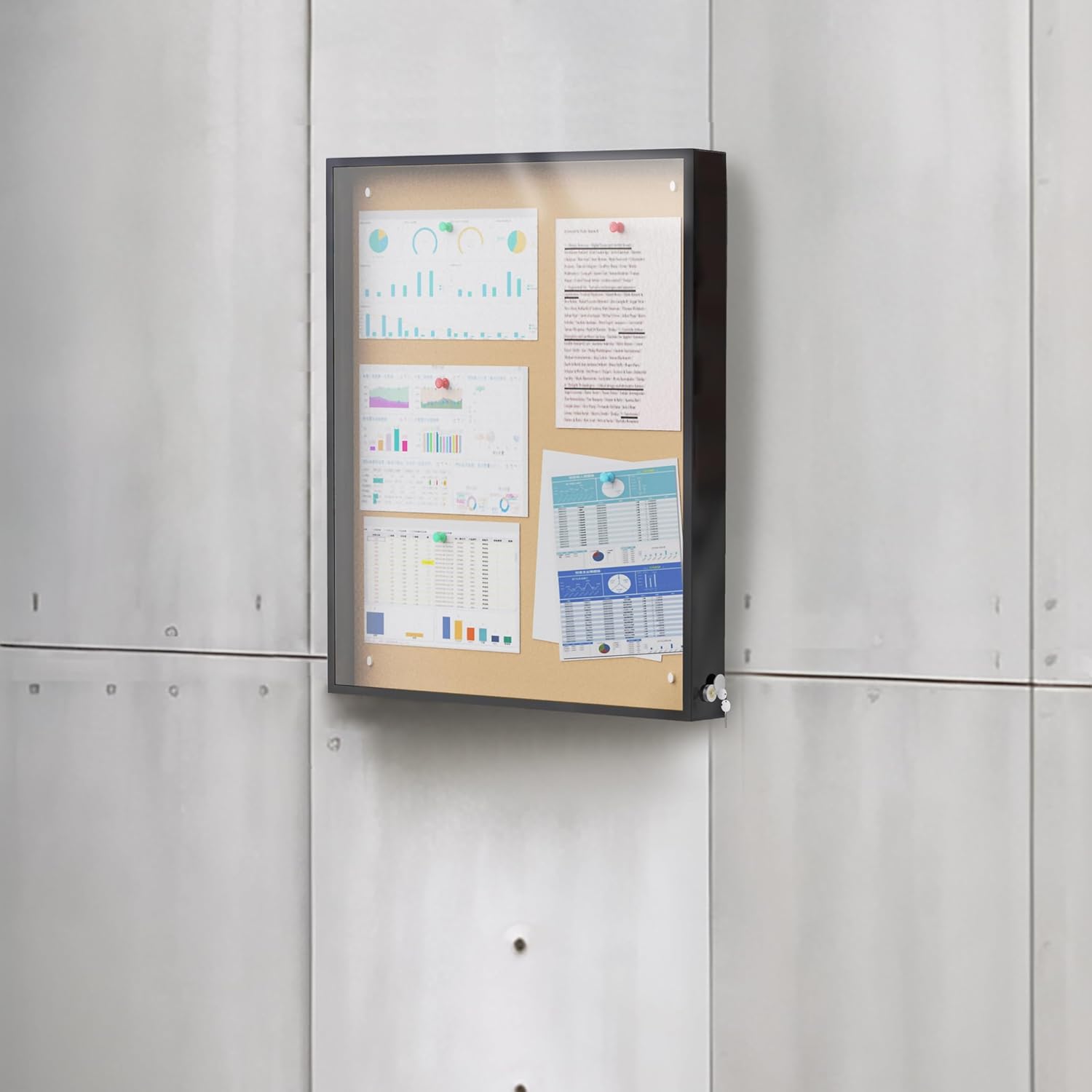 Lockable & Secure:The enclosed bulletin board includes a secure locking mechanism to keep important documents safe. Whether in a school hallway or at an office entrance, thislockable bulletin board prevents unauthorized access, keeping your notices intact and ensuring privacy for sensitive information