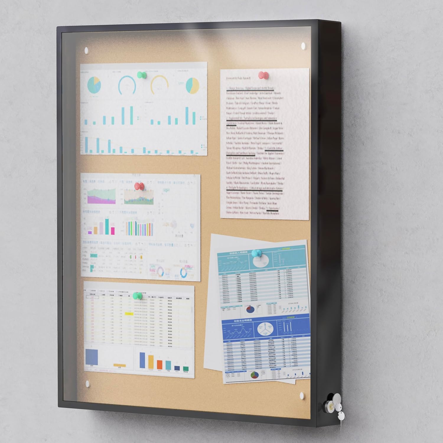 Lockable & Secure:The enclosed bulletin board includes a secure locking mechanism to keep important documents safe. Whether in a school hallway or at an office entrance, thislockable bulletin board prevents unauthorized access, keeping your notices intact and ensuring privacy for sensitive information