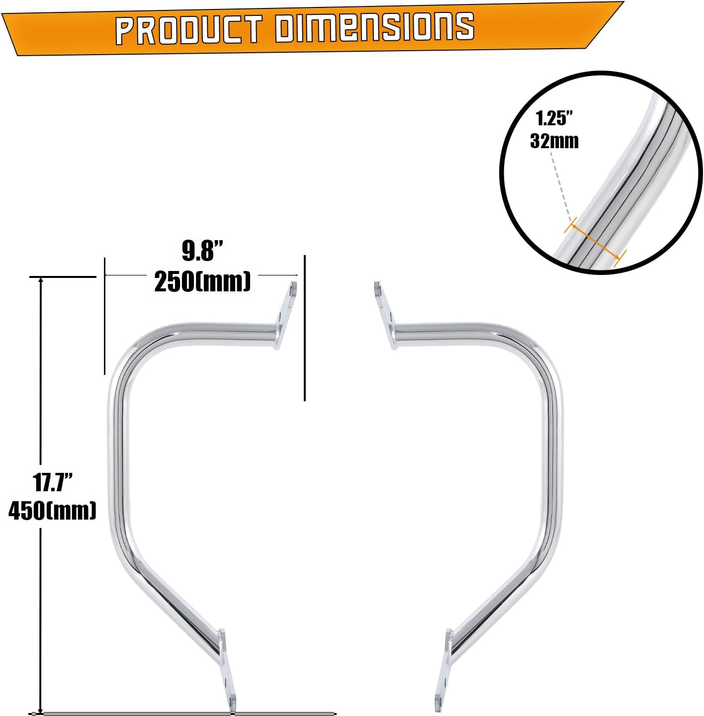FEATURES - The Crash Bar Engine Guard Highway Bar material is a 1.25\' steel tube that is thicker than most sellers. All screws are 304 stainless steel.