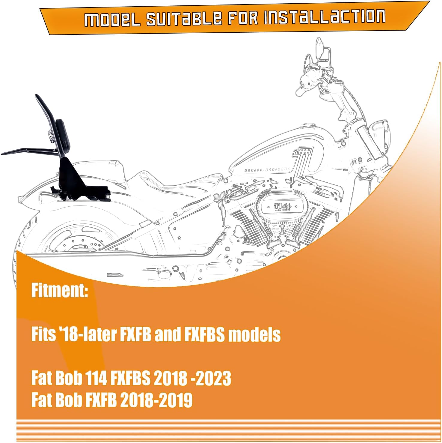FITMENT - Adjustable One-Piece Holdfast Sissy Bar Luggage Rack Passenger Backrest for Harley Davidson Fat Bob 114 FXFB and FXFBS Models 2018-2023,Fits `18-later FXFB and FXFBS models