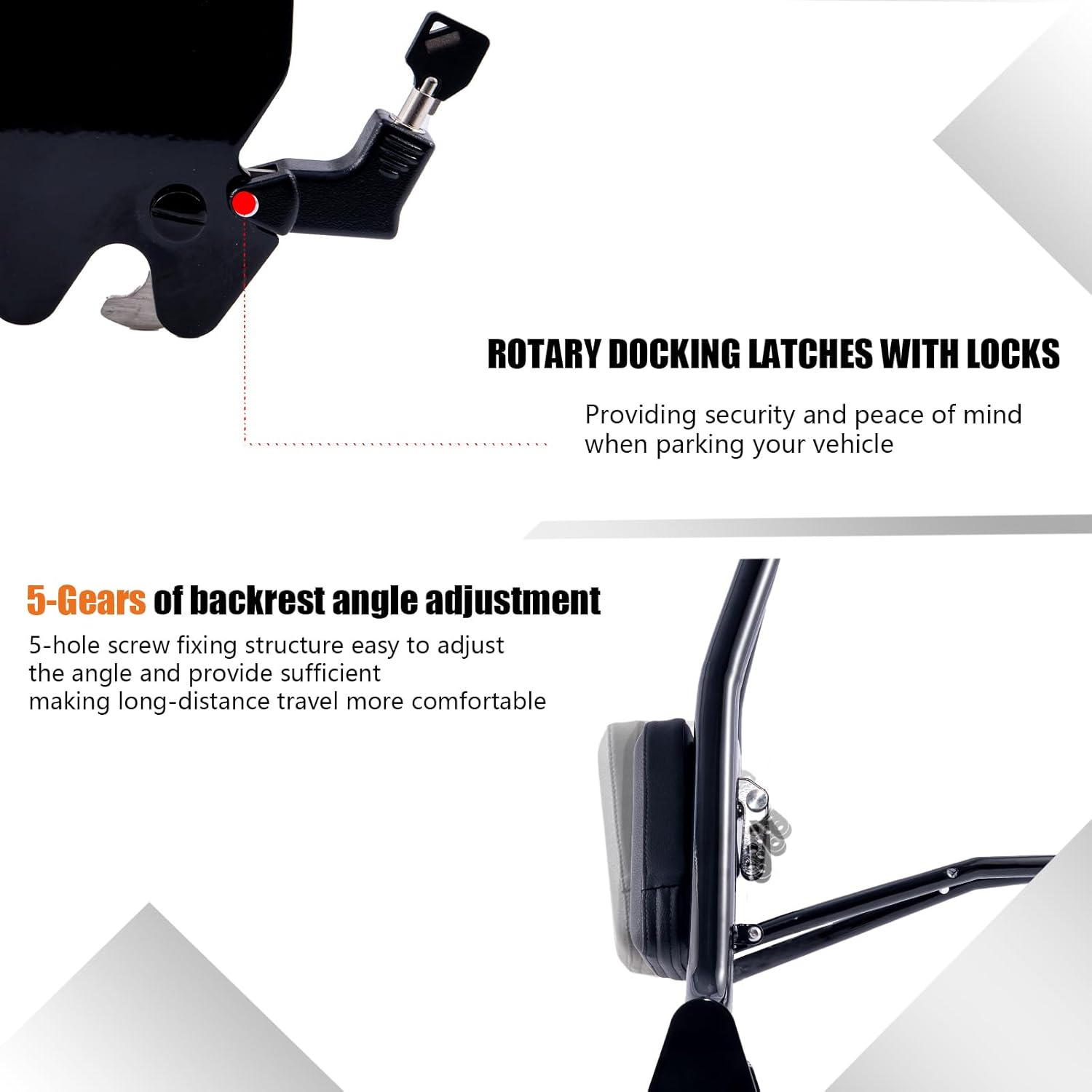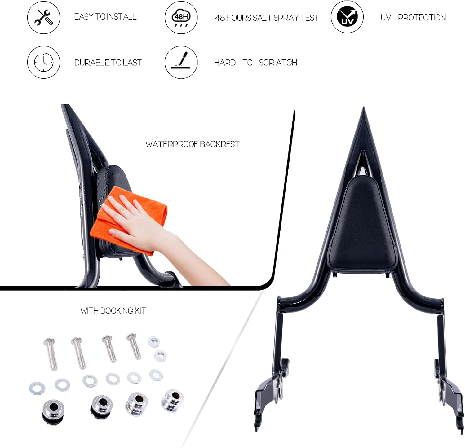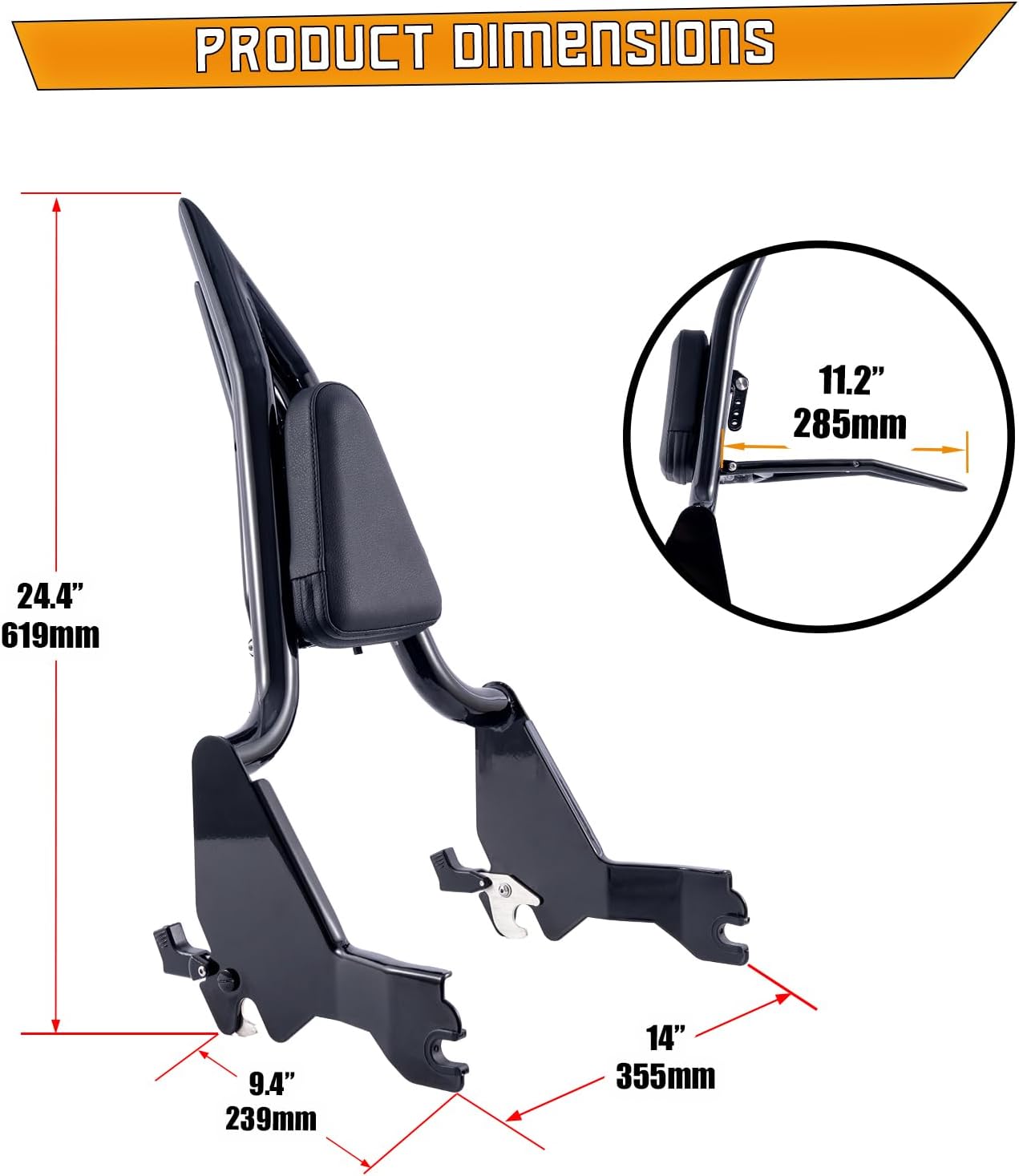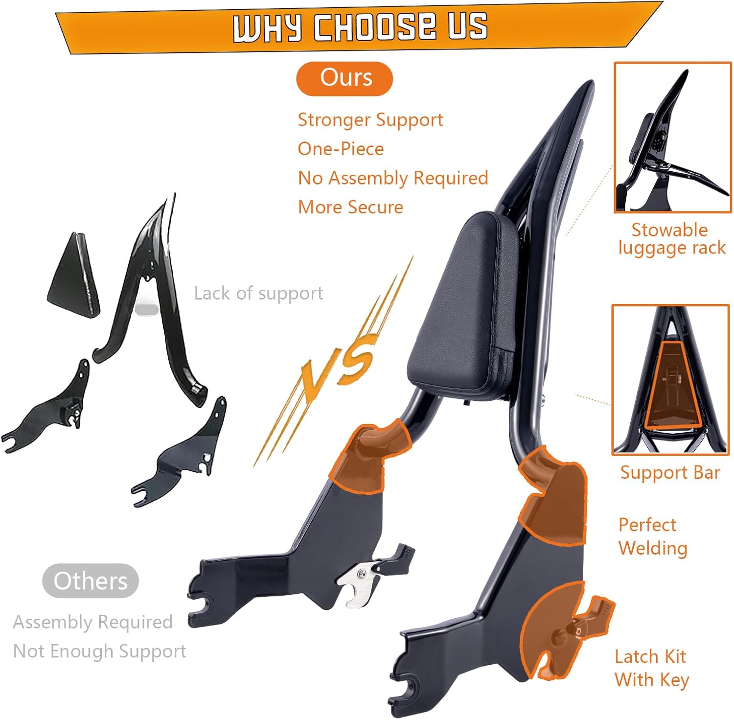 Adjustable One-Piece Sissy Bar/Luggage Rack/Passenger Backrest w/Lock for Harley Davidson, Gloss Black 18-23