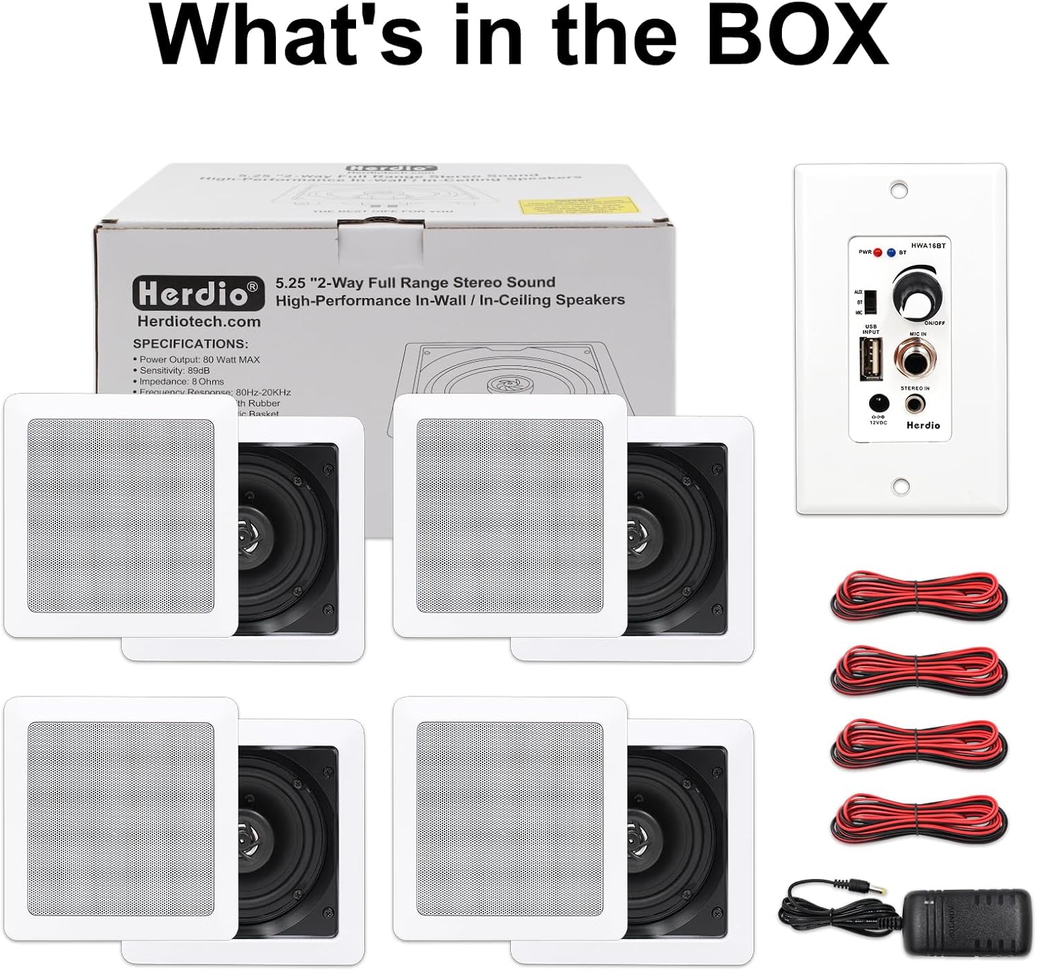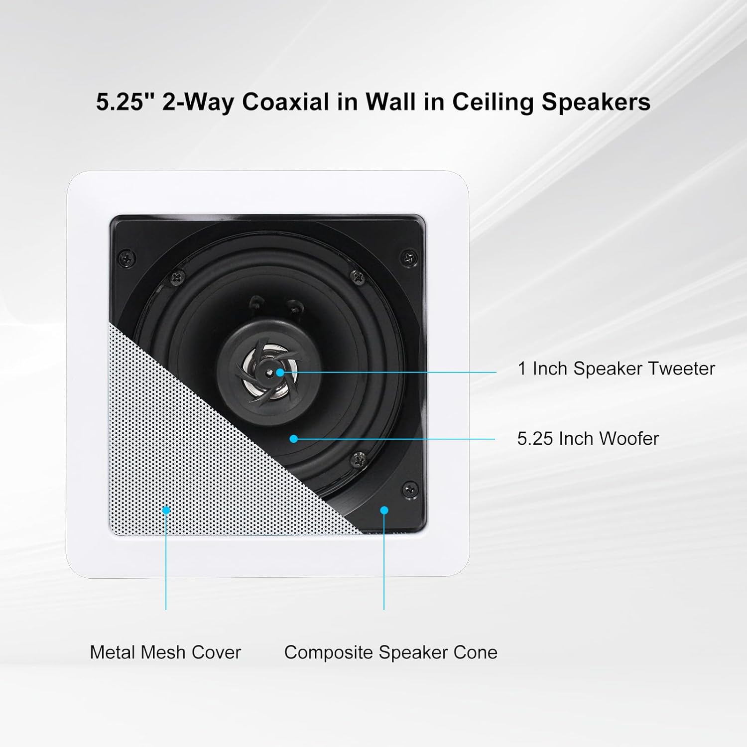 2-Way Bluetooth 5.25' Ceiling Speakers with 4 Channel Wall Amplifier, 320W Square in Wall Speaker System