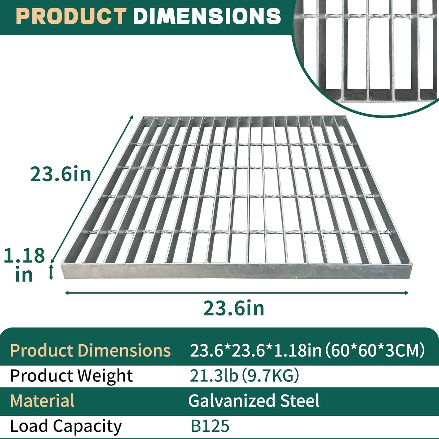 Outdoor Drain Cover: 23.6inX23.6in Steel Grates for Driveway, B125 Class Channel Grate