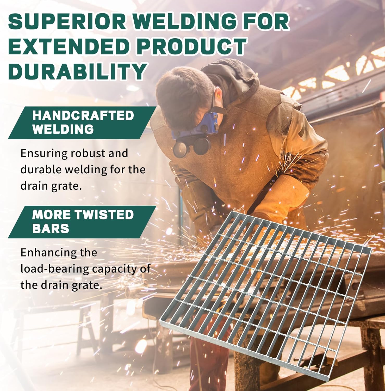 Premium Material: Our steel grating is made of high-quality galvanized steel, ensuring excellent durability and corrosion resistance. It can withstand long-term outdoor use without rusting or corroding, ensuring a long lifespan.