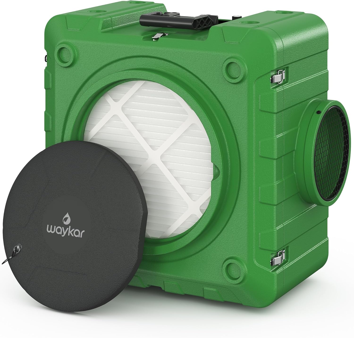 Upgraded 3-Stage Filtration System: This Waykar air scrubber is equipped with a MERV-10 filter to capture dust, lint, hair, fibers, and pet dander, a HEPA filter to remove particles, and an activated carbon filter to eliminate pets hair, cooking smell, etc. This professional air scrubber can capture 99.97% of particles as small as 0.3 microns, providing you with a good environment.