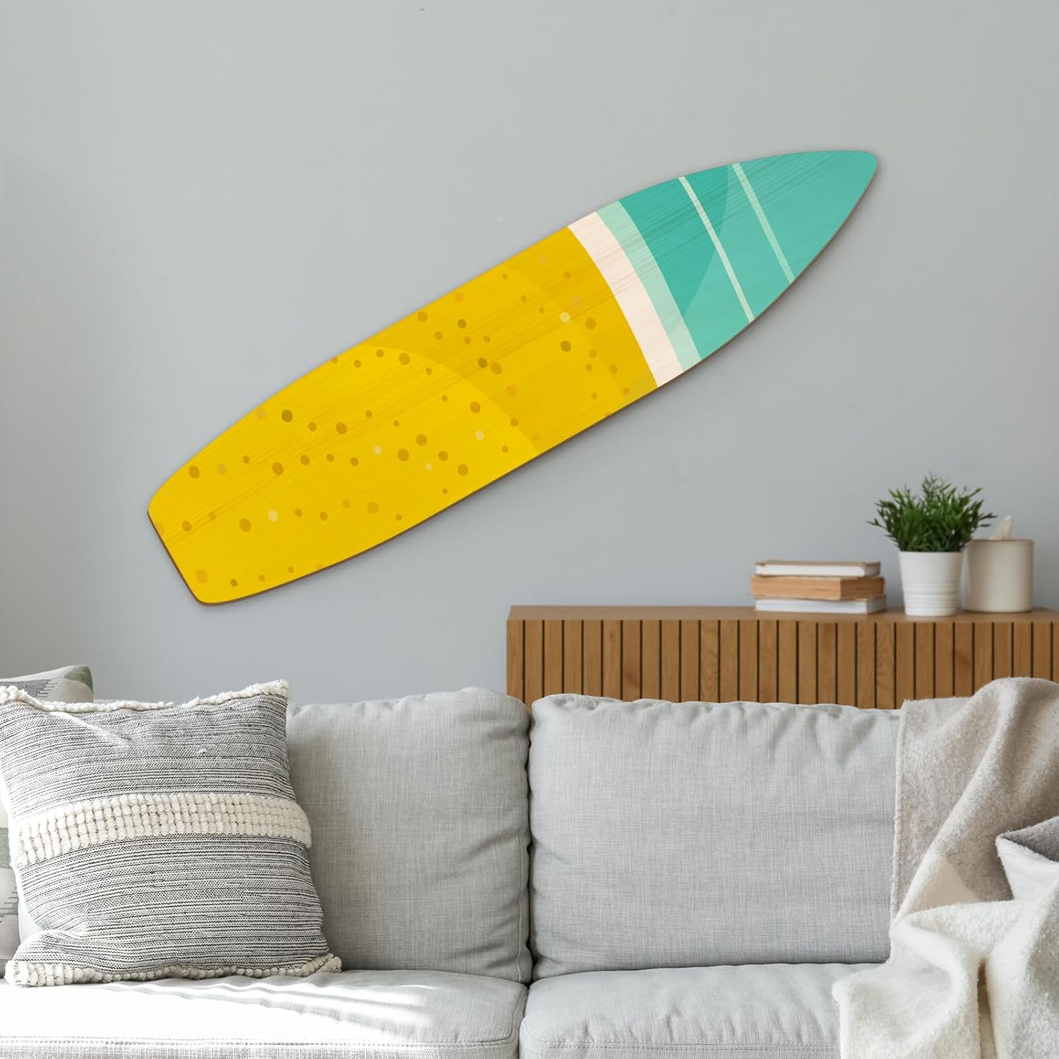 Suitable Dimensions: our pine wooded surfboard dimension is approx. 71.65 x 15.75 x 0.59 inches/ 182 x 40 x 1.5 cm, is suitable for making a prominent decorative impact without taking up too much space, this can revitalize any room instantly with its striking presence, making it a unique and impressive focal point piece