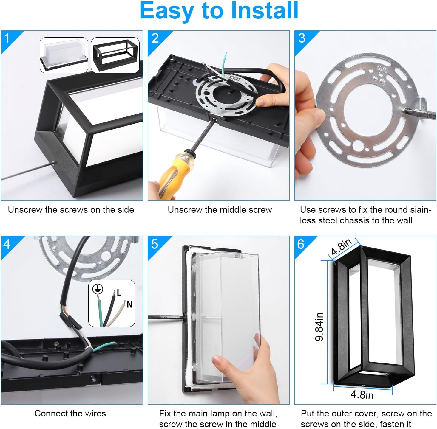 Easy Installation: This LED light measures 6.29 inches * 6.29 inches * 3.93 inches and does not require assembly. It can be completed by one person in approximately 5 minutes