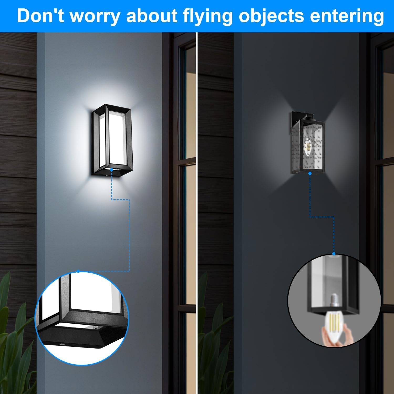 Applicable Scenarios: This exterior porch lighting combines aesthetics and practicality, making it the best choice for creating a warm and friendly atmosphere for families. LED wall lights are suitable for porch, stairways, front door and entrances etc