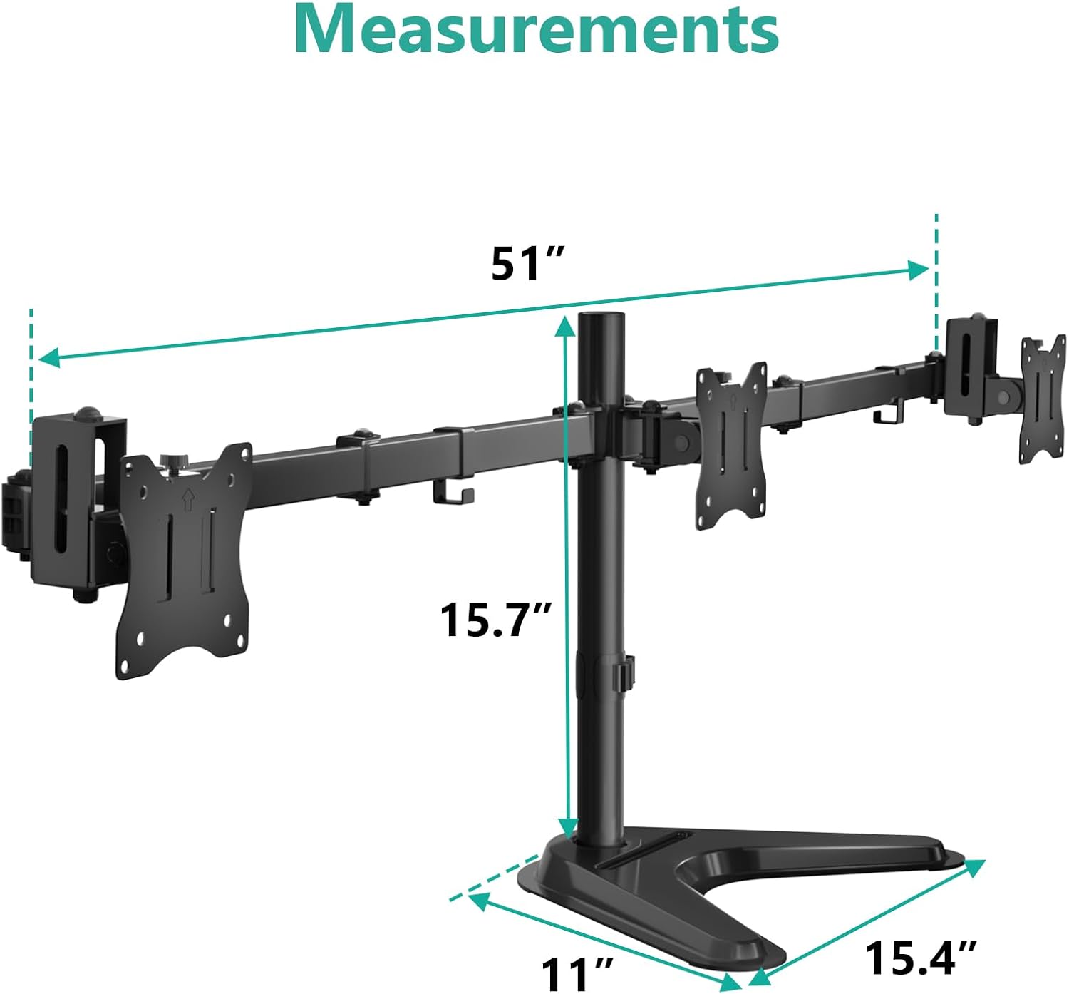 Free Standing Triple Monitor Mount, Heavy Duty for 13-27 inch Screens, Adjustable 3 Monitor Arm Desk Mount