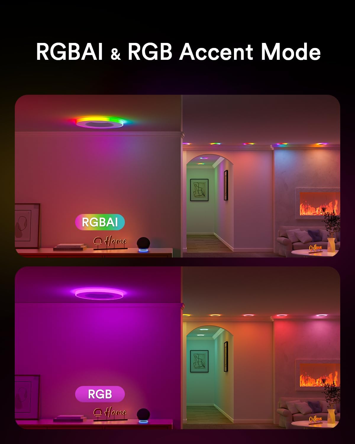Smart App & Voice Control: Manage led can lights for ceiling with Lumary App via Bluetooth & 2.4GHz Wi-Fi. If the light called Kitchen, after synced to Alexa, you will find the Main Light called ``Kitchen`` while the Auxiliary Light called ``Kitchen Colorswitch``. And you can also dim the smart lights individually-Main Light & Auxiliary Light by Alexa, Google Assistant and Siri. The connectivity options of smart home promise more stable and seamless connection and intergrate other smart home devices easily. Note: This model cannot work with Apple Home kit, 5.0 Ghz and dimmer switch
