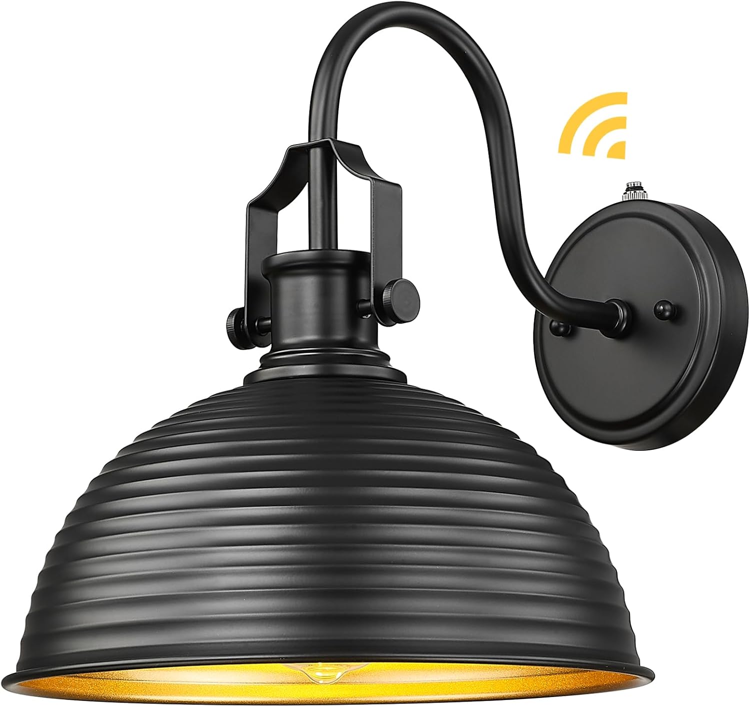 12 inch Large Outdoor Wall Lights: Bring rustic charm and industrial elegance to your home with this farmhouse-style gooseneck barn farmhouse sconces wall lighting. Featuring a classic matte black finish on the outside and a soft gold tone inside, Perfect for both indoor and outdoor spaces like porches, garages, patios, hallways, bathrooms, or kitchens.