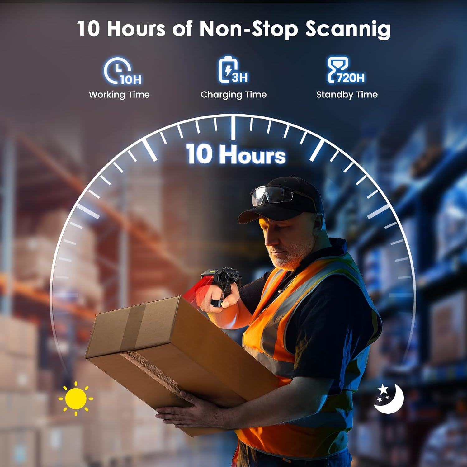 Long Working Hours, Effectively Reduced Downtime: The 800mAh large-capacity battery supports up to 10 hours of use at a scanning frequency of 1 seconds. With this long working time, this glove barcode scanner no need for frequent recharging, meaning tasks can proceed without interruption. This is especially critical in fast-paced environments like warehouse, logistics hubs, and retail stores, significantly improving workflow continuity and overall productivity