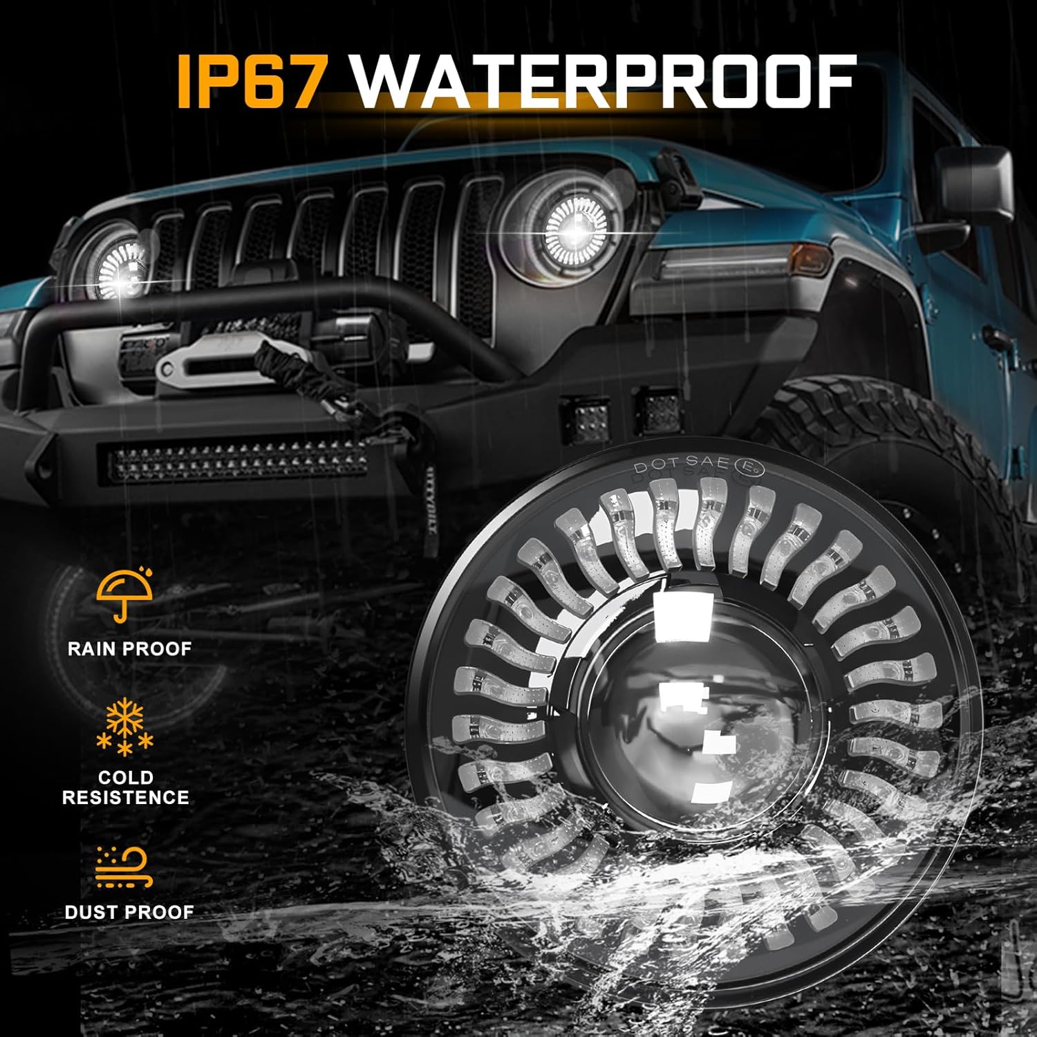 DOT Approved: BraveWAY 7 inch LED Headlight was DOT certificated and legal on the road.