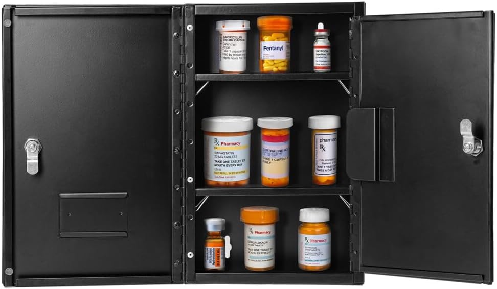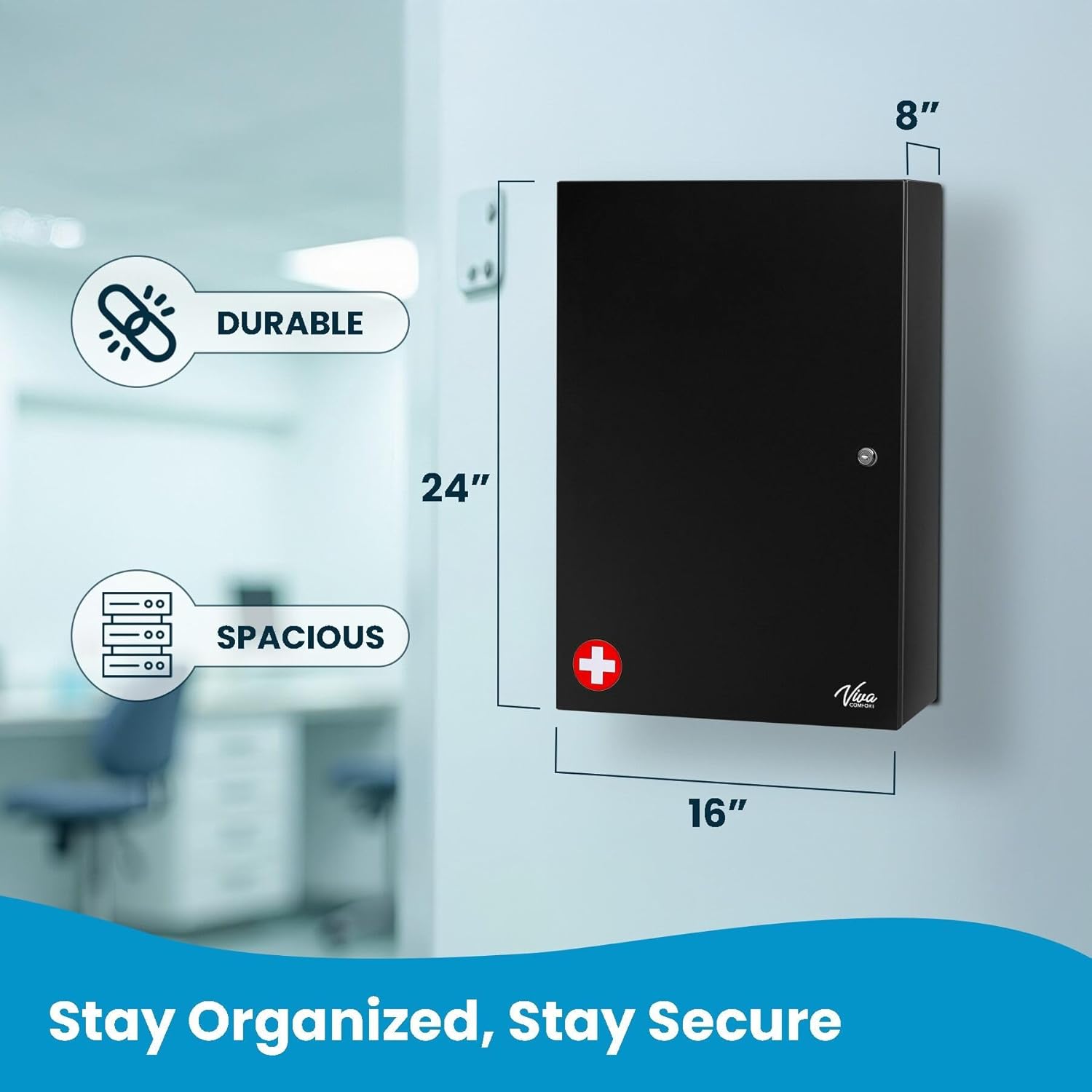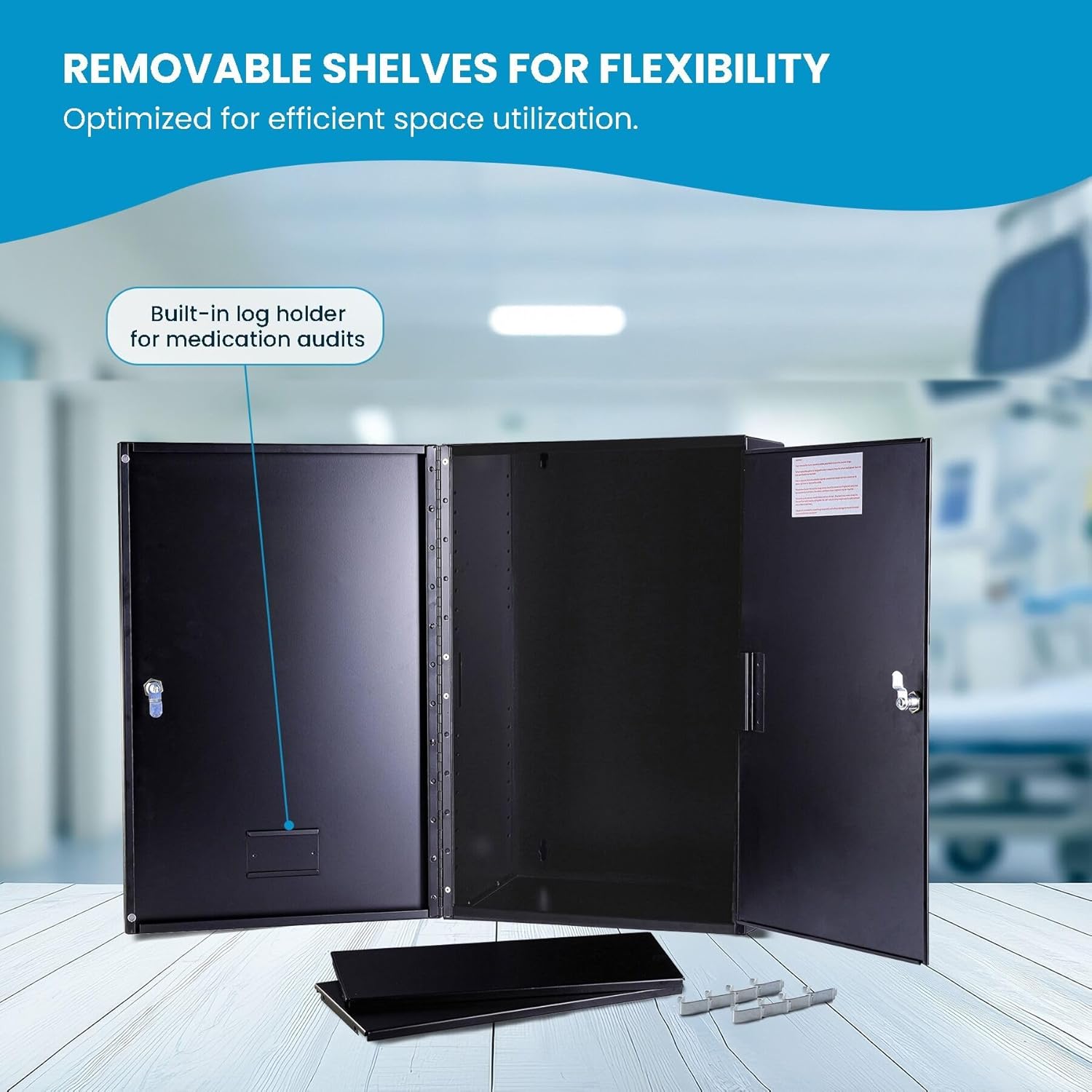 Large Black Double Door Narcotics Cabinet, Locking Medicine Cabinet, 24' H x 16' W x 8' D