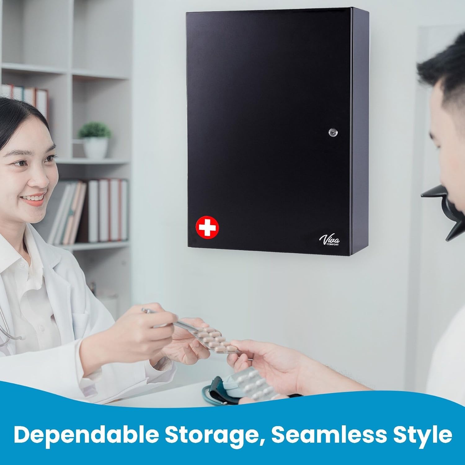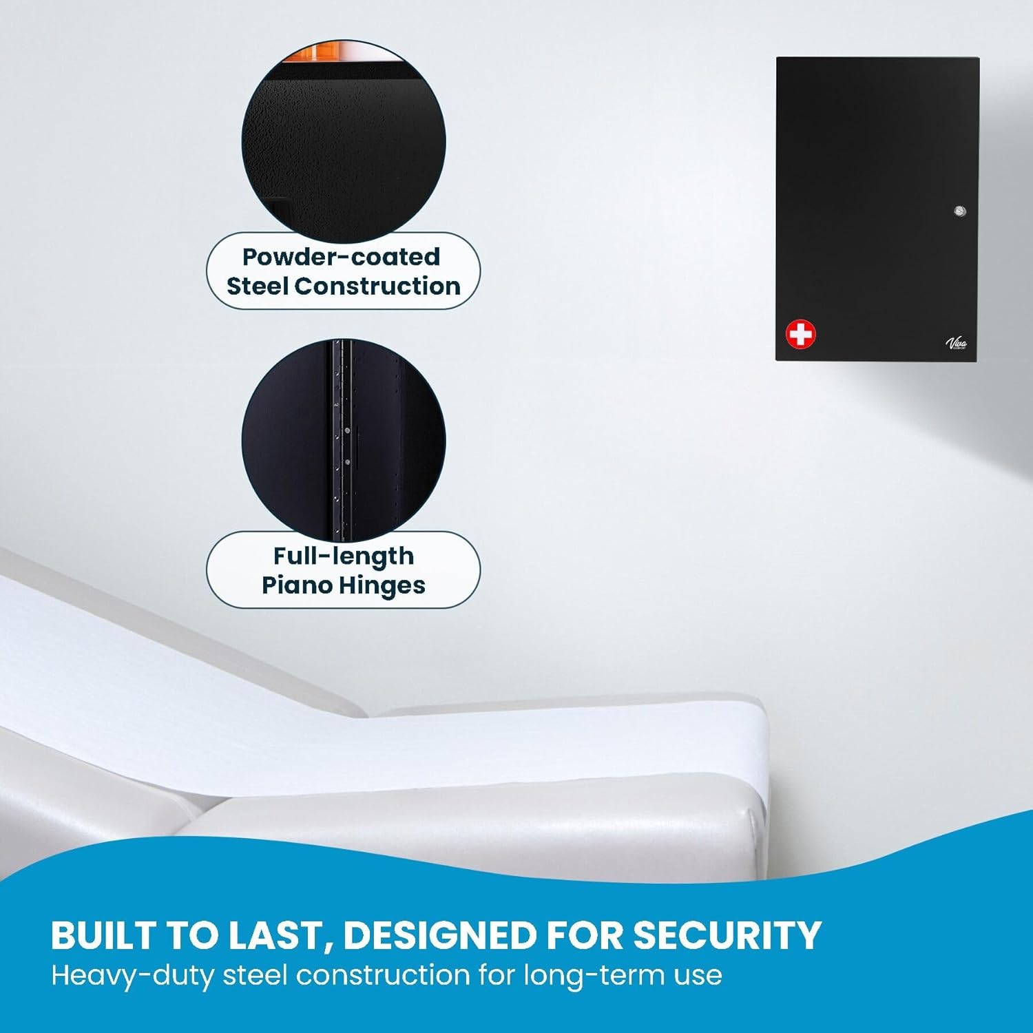 DURABLE CONSTRUCTION: The locked medicine cabinet is made from heavy-duty, powder-coated steel for long-lasting use in professional environments.