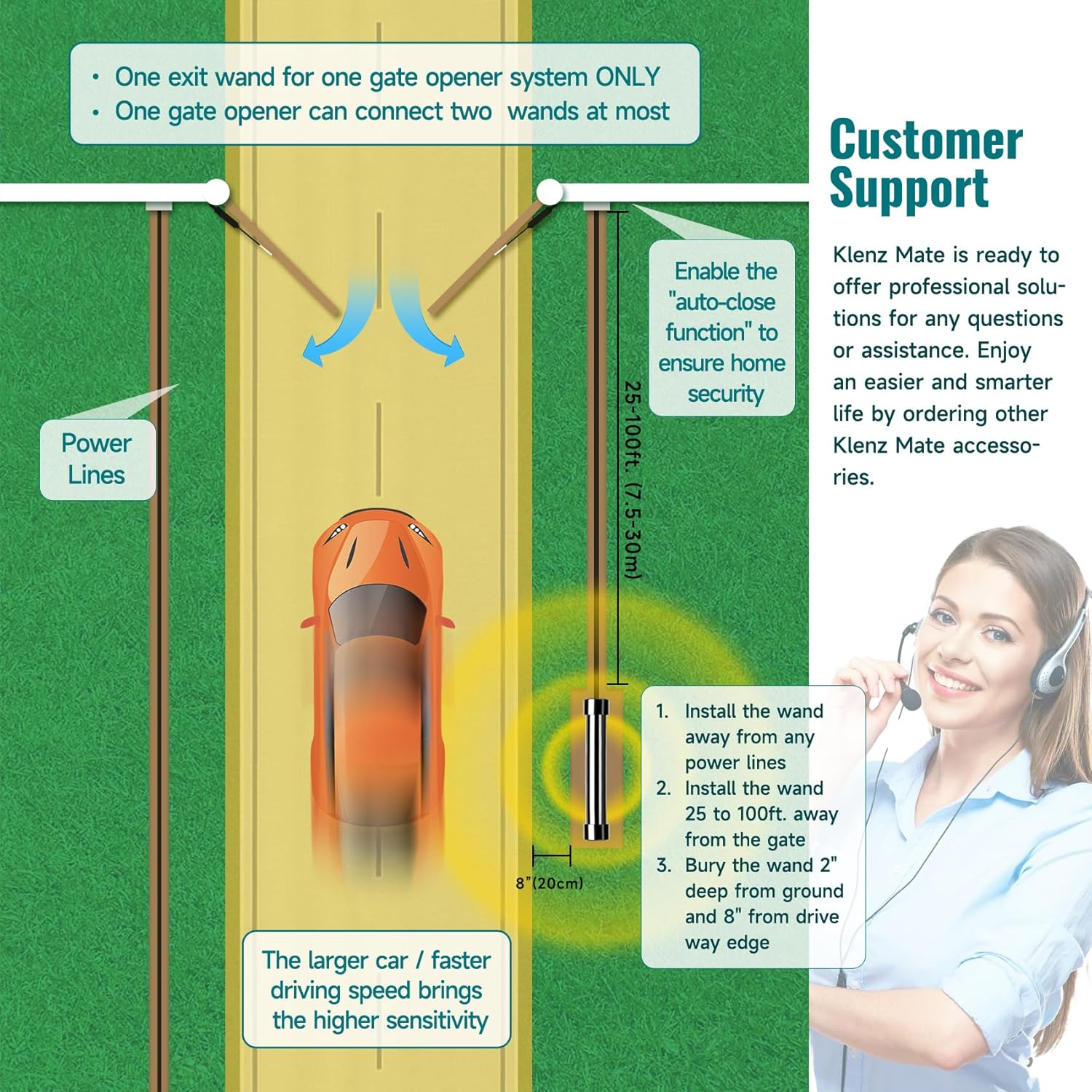 Upgraded Version: When the vehicle approach within 12 ft range, the exit wand sensor will detect and activate gate opener system to open the gate and our device has a range adjustment board to prevent false gate opening by lawn moves and other metallic objects