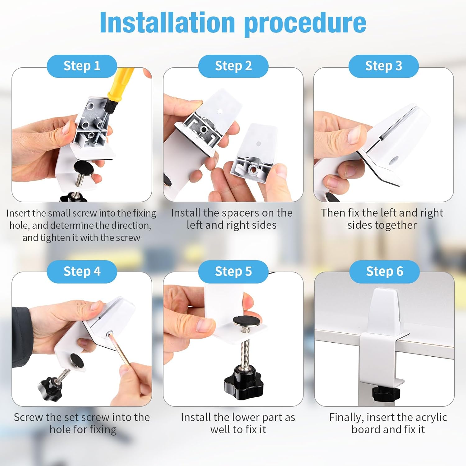 High Quality Material-Our acrylic desktop partitions are made of high-quality frosted acrylic, and the Clamps are made of high-strength alloy steel. They are beautiful and coordinated, and can perfectly blend with your office and learning environment. They are sturdy, durable, and easy to clean.Perfect packaging prevents the product from scratching the surface during shipping.