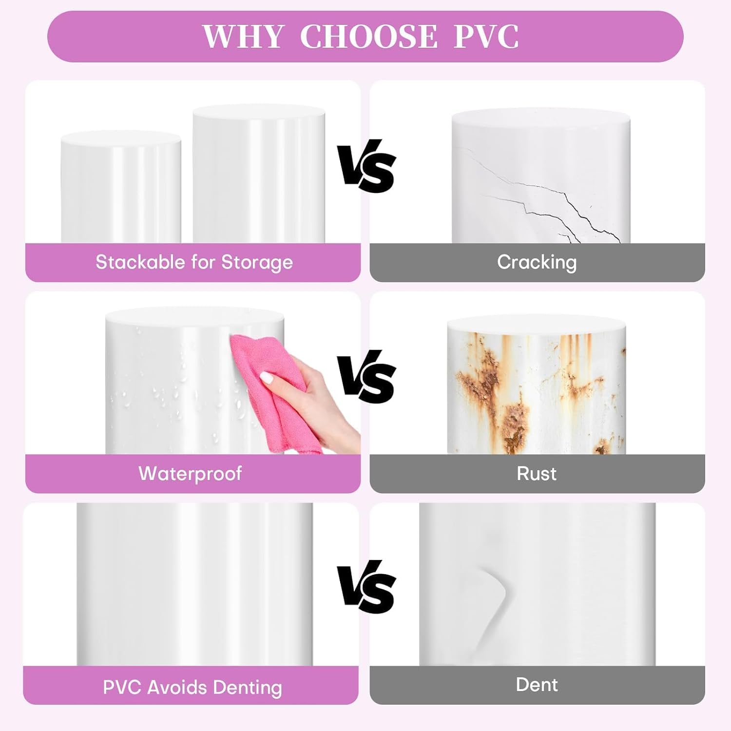 Versatile & Beautiful: This elegant and classic white cylindrical stand is perfect for any occasion. Including weddings, birthdays, baby shower, graduation parties, product launches, business meetings and other indoor and outdoor occasions! Whether displaying desserts, flowers or merchandise, its classic design complements any theme or setting