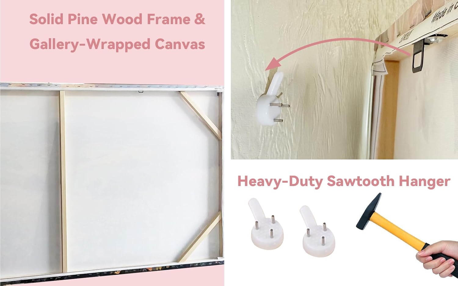 5-Minute Festive Upgrade Pre-installed sawtooth hangers + corner protectors allow solo installation. Rotate horizontally above sectionals or vertically in narrow foyers.