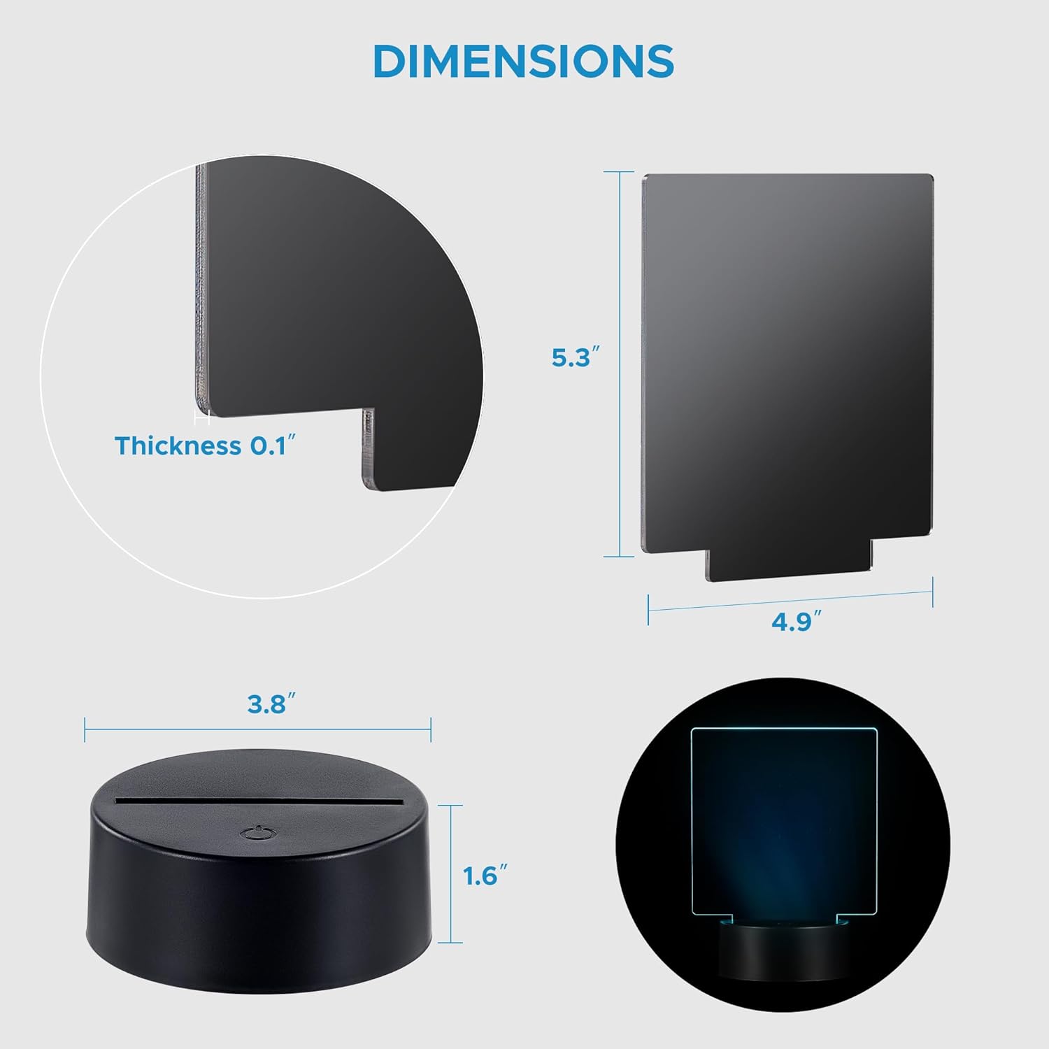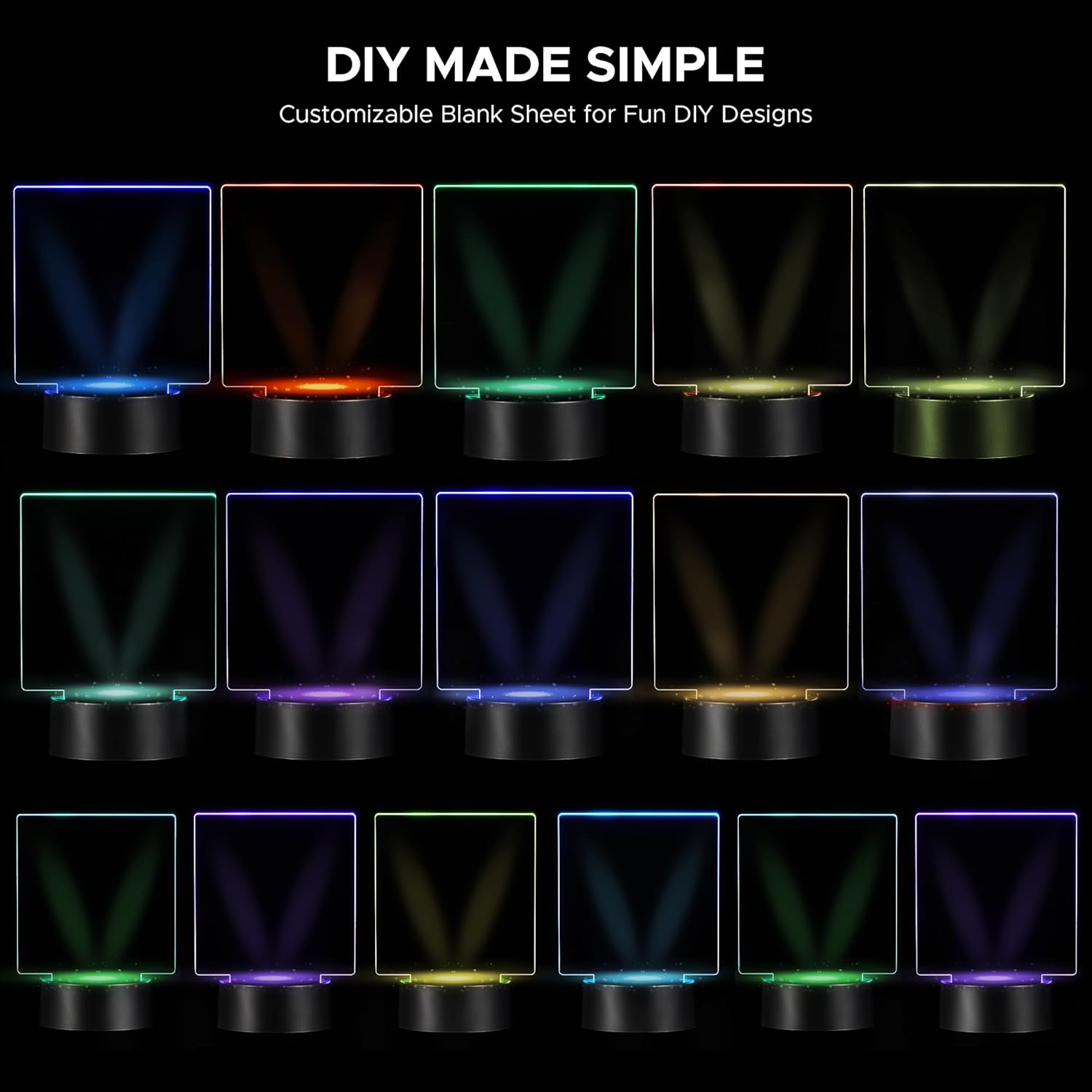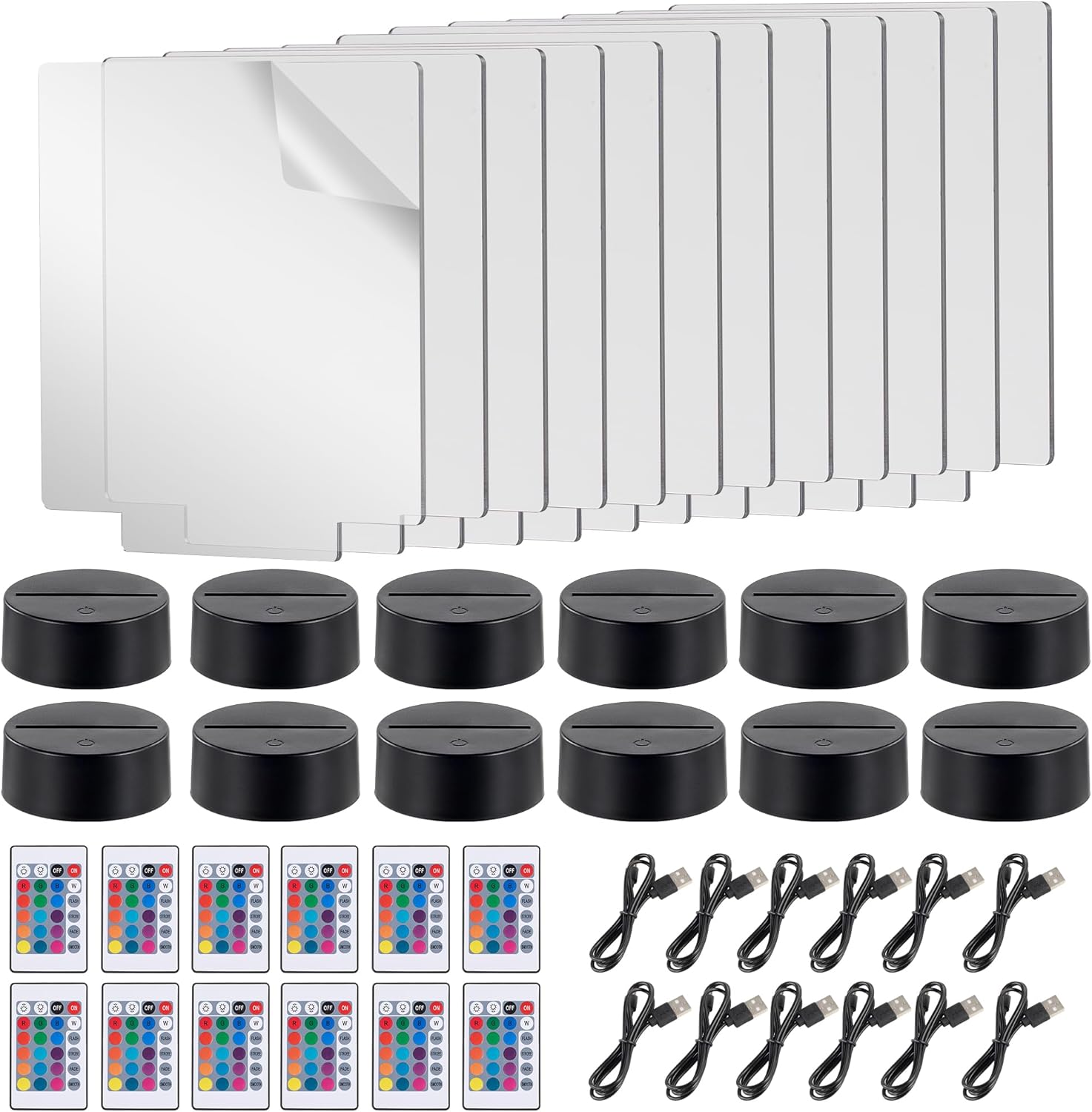 12 Sets LED Light Base with Acrylic Blank Sheets, 16 Colors,4 Modes, LED Night Light Set