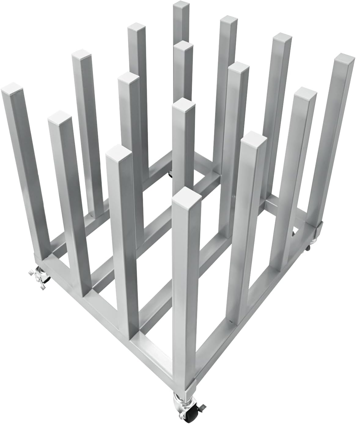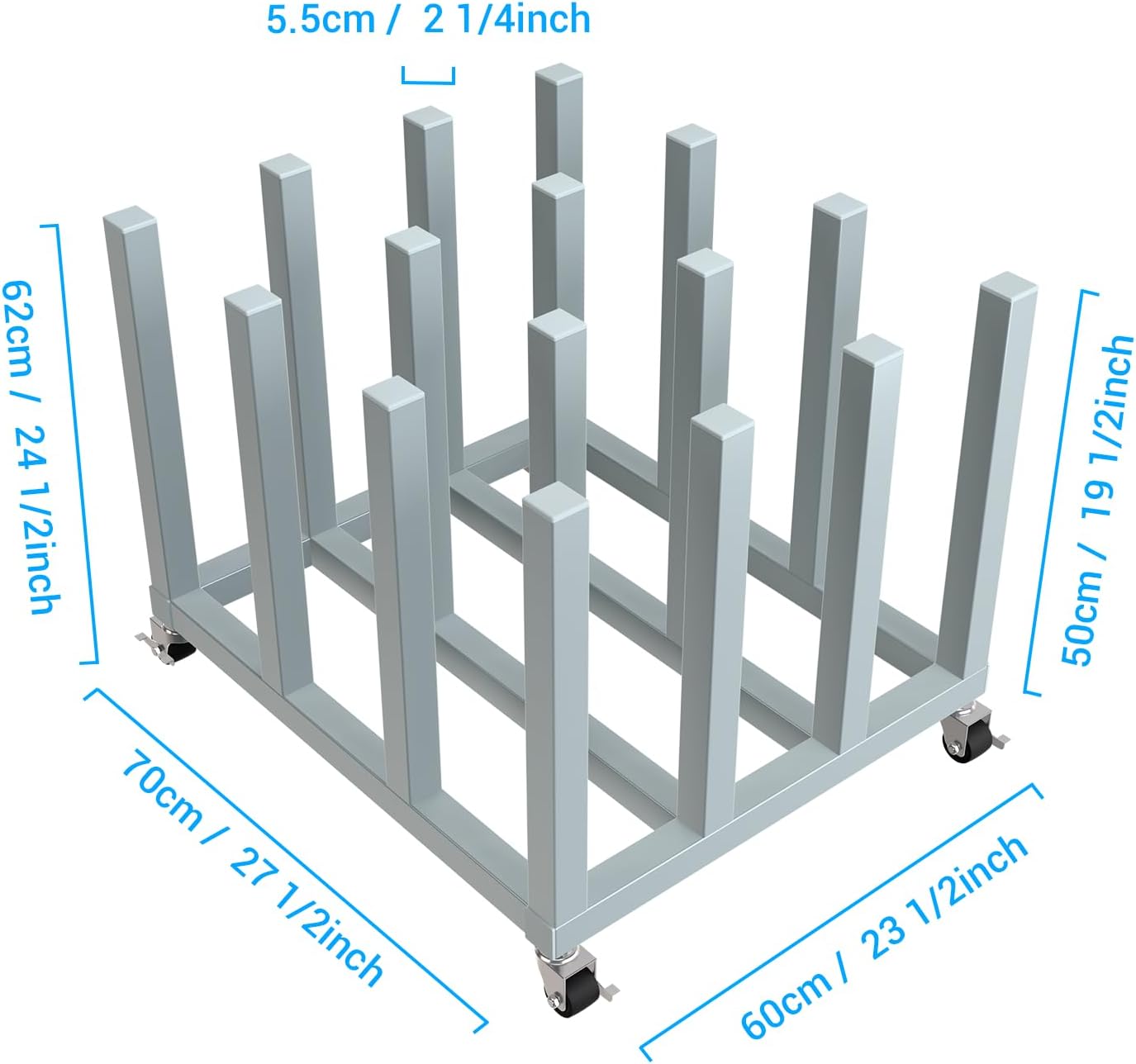 Heavy-Duty Steel Construction: Built from durable square tube steel,this 16-roll Vinyl Roll Storage Rack Cart offers superior strength and holds up to 16 rolls of vinyl, banners, and blueprints, ensuring long-lasting stability and performance in demanding environments