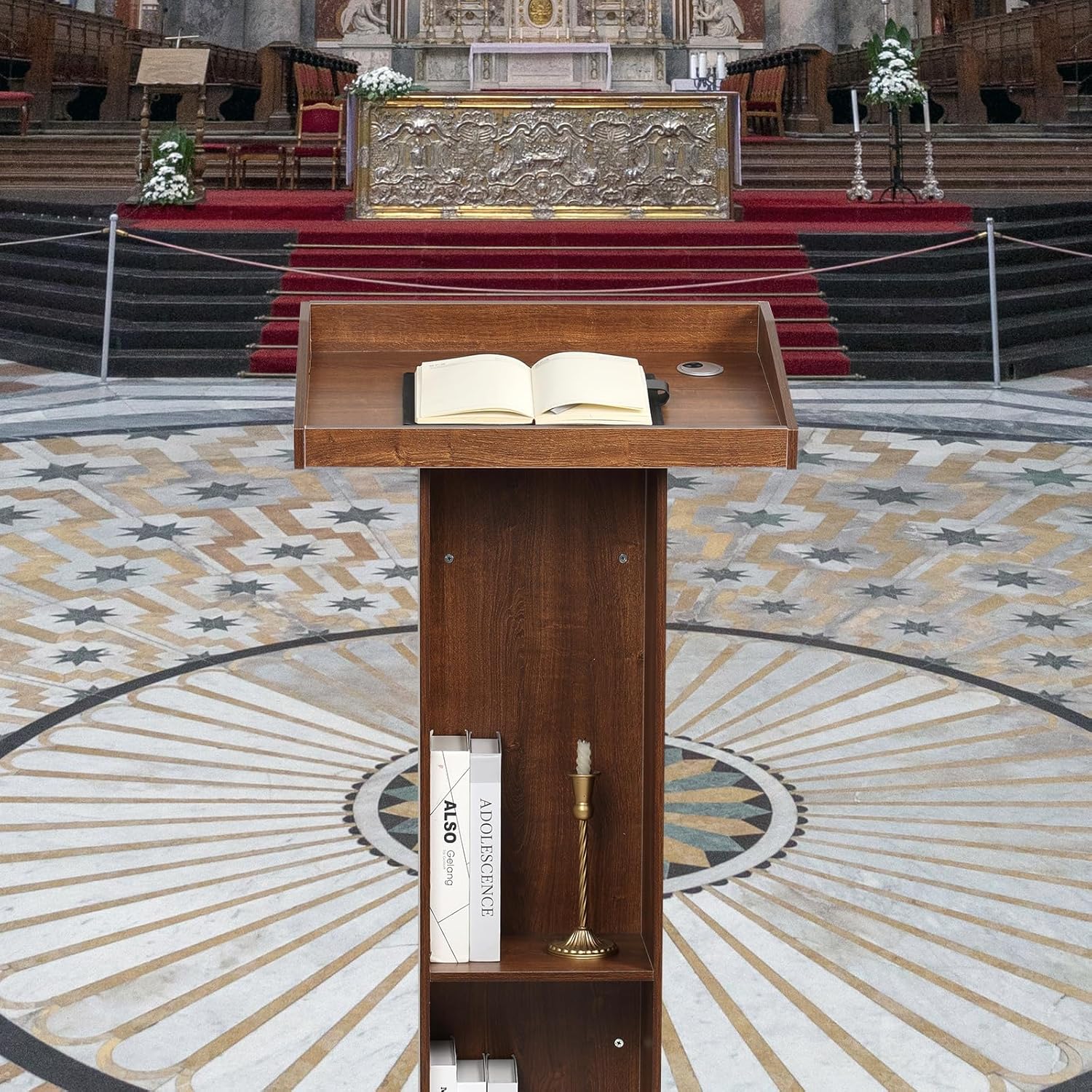 Wooden Podium Stand for Lectern, Presentation, Speech, Pulpit (Walnut)