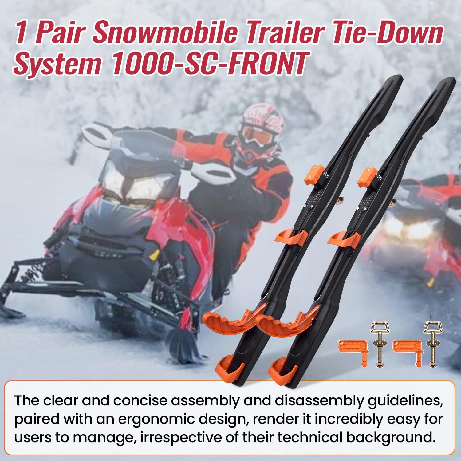 Farpida 2Pack 1000-SC-FRONT Snowmobile Trailer Tie Down System Fit for Superclamp II, Snowmobile Mounting Bracket for