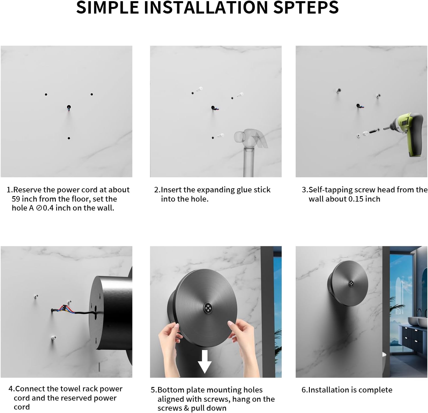 Rapid Drying Technology - Say goodbye to damp, musty towels! Smart Time Control - 1h increments from 1h-8h. Temperature Control - 113°f,122°f,131°f,141°f. Our electric towel warmer uses advanced heating technology to dry your towels quickly and efficiently, ensuring you always have a warm, dry towel at hand.