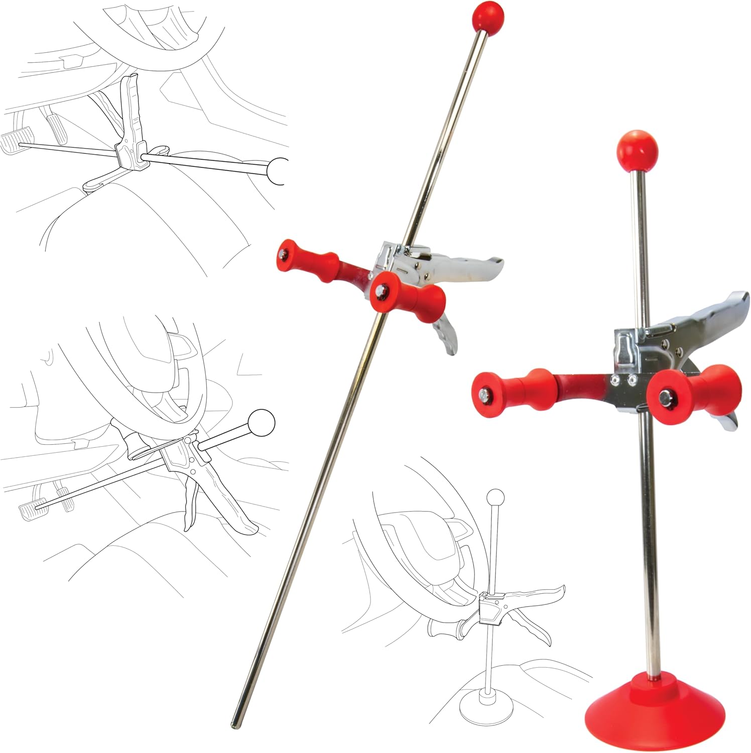 ALIGNMENT TOOLS AUTOMOTIVE ACCESSORY KIT: This bundle includes a 16.5\' adjustable steering wheel steering wheel lock alignment tool and a 28\' adjustable brake depressor tool, providing a comprehensive solution for vehicle maintenance.