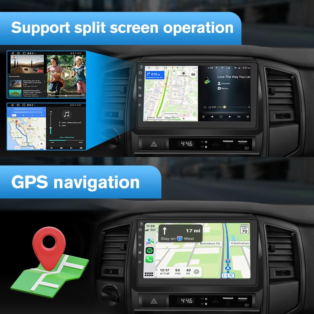 Built-in Wireless CarPlay & Android AutoA Smart Way to Use Your Phone in the Car, Simply connect your iPhone/Android phone to the Android car radio via bluetooth. Use smart voice assistant or touch the display, you can get directions, make calls, send and receive messages, and enjoy music etc. A smarter, safer and more fun way to use your phone in the car, and keep you stay focused, connected and entertained.