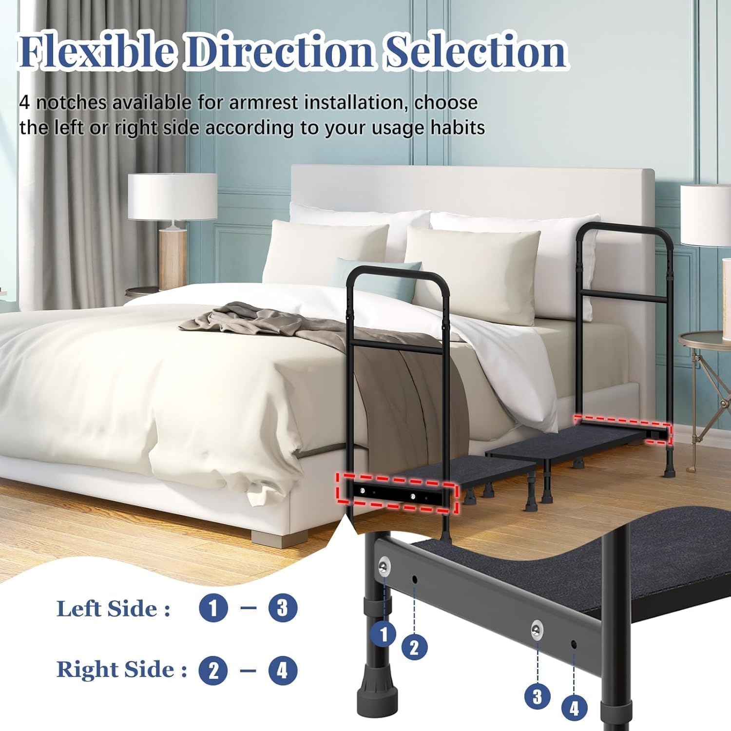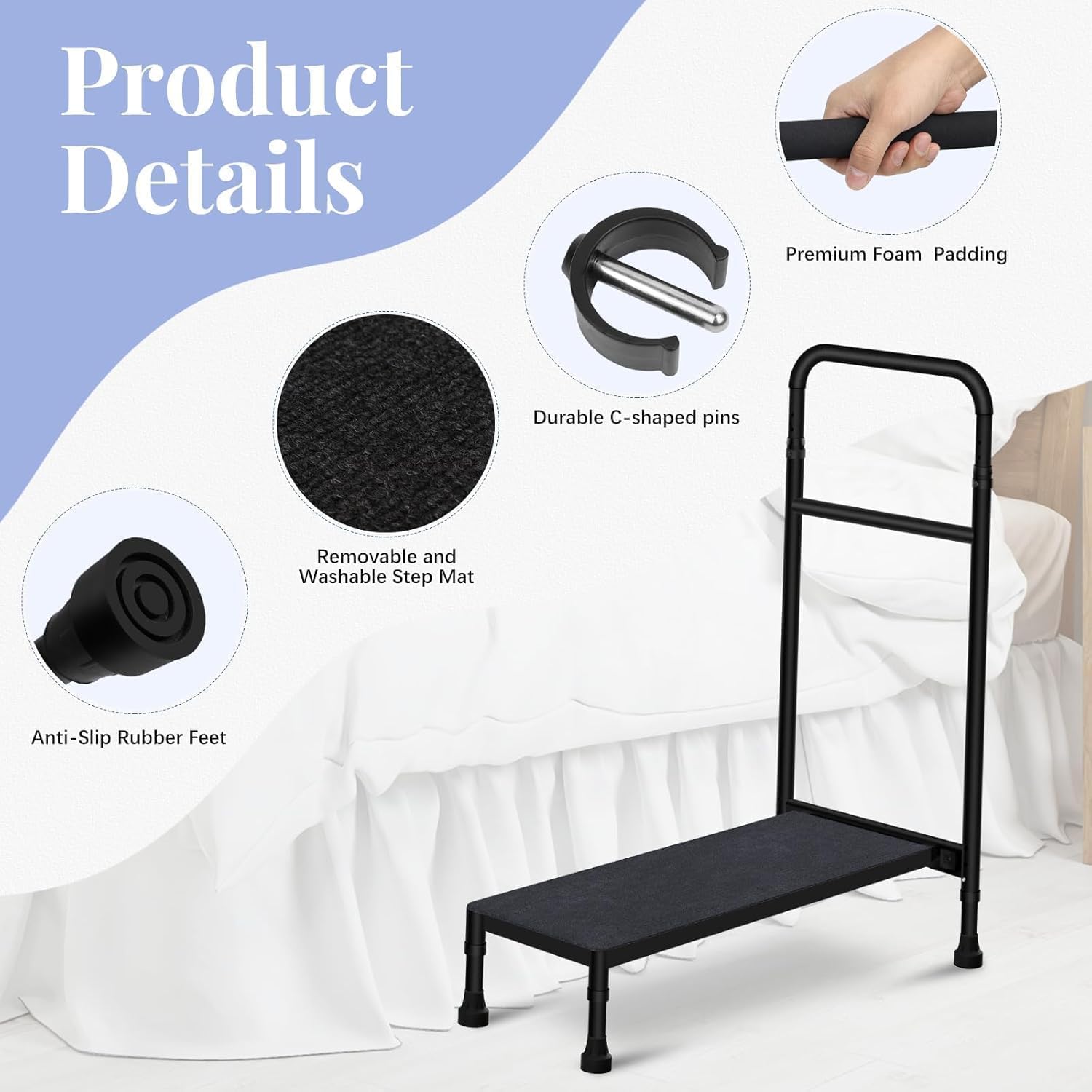 Robust & Long-lasting: This bed steps for high beds for adults is constructed from heavy-duty iron, capable of supporting up to 400 lbs. It’s built with a sturdy and stable structure, including a non-slip mat, foam-padded dual handles, and sturdy rubber feet for enhanced safety and comfort. Its heavy-duty design and non-slip surfaces make it reliable and safe for elderly, disabled, or recovering individuals