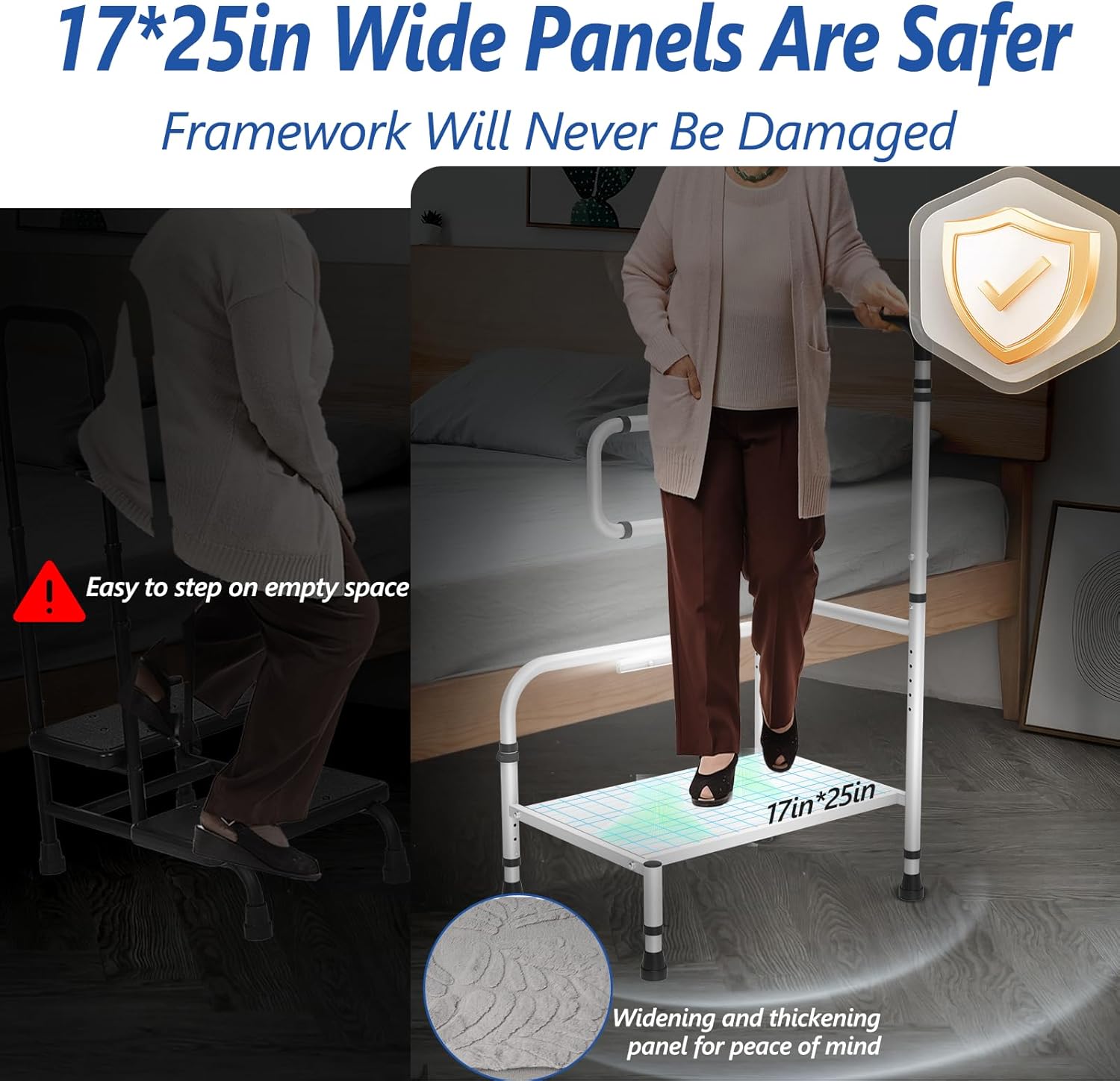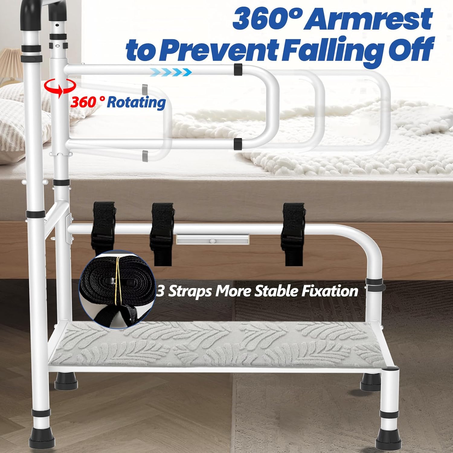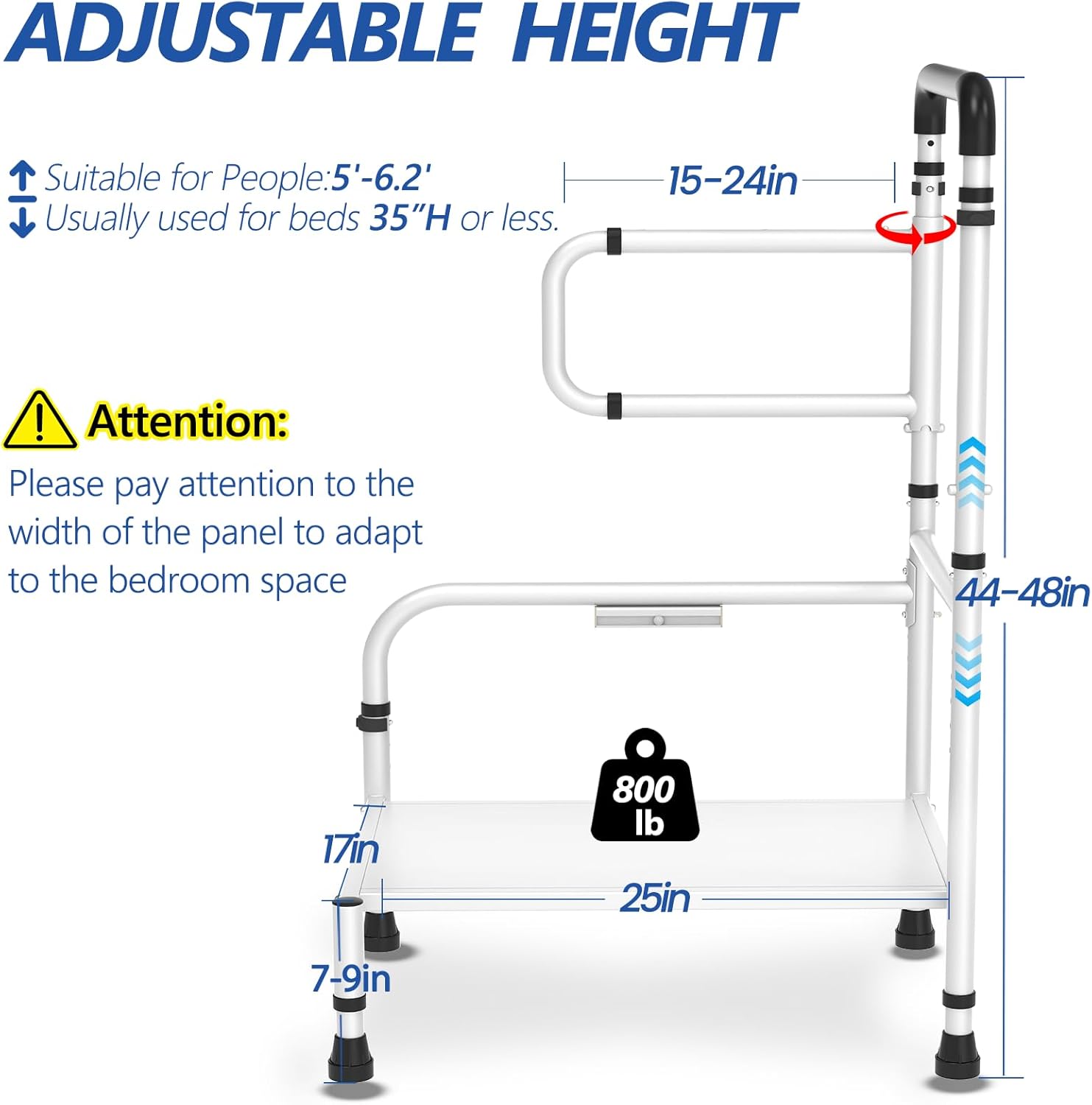 Bed Step Stool For Elderly/High, 360 Anti Fall Armrest Support 800 lbs, 8-Level Adjustable Height, with Storage Bag