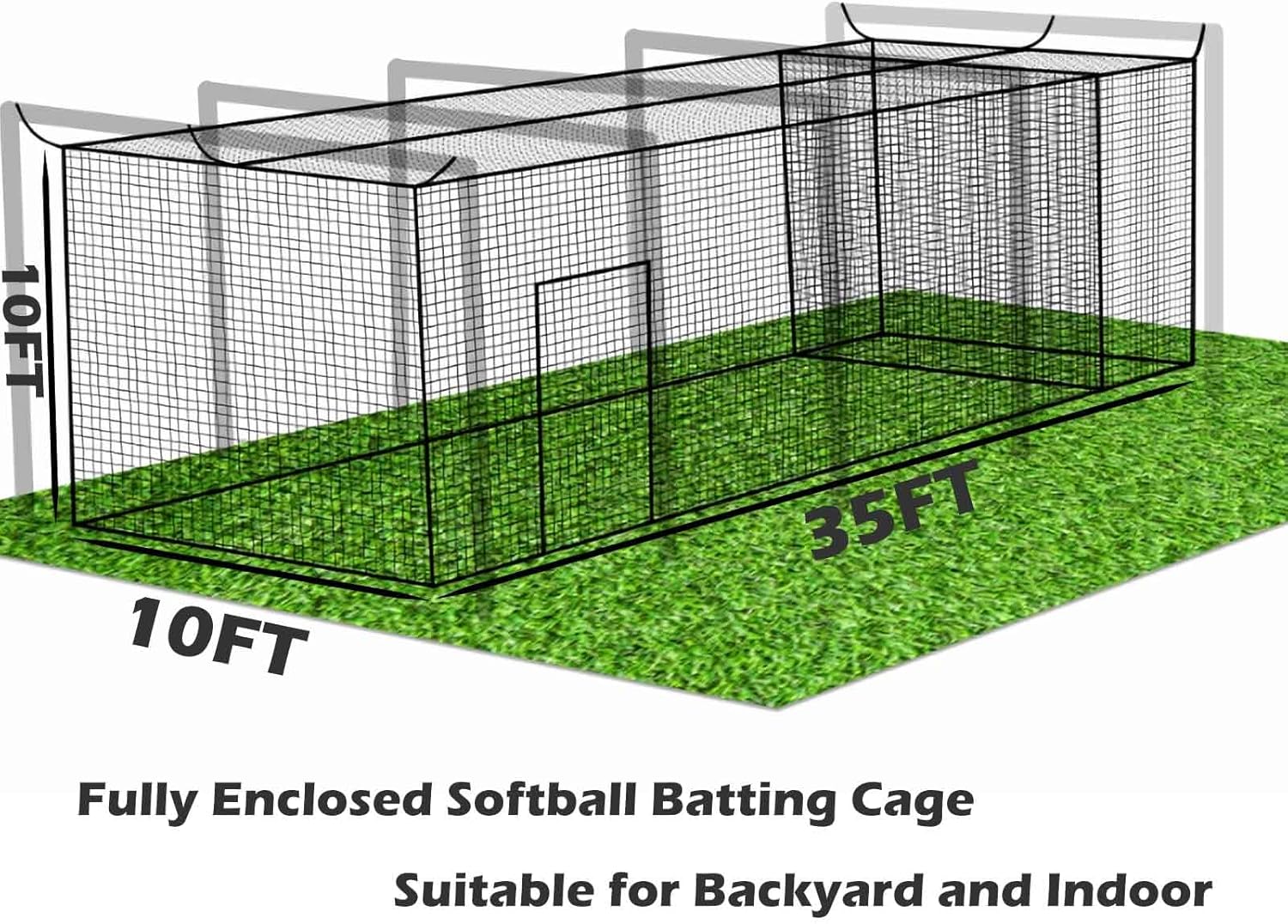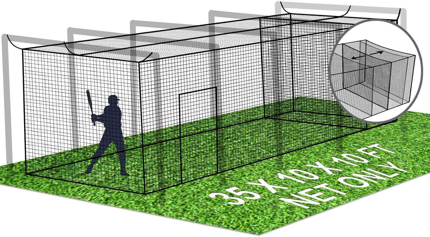Baseball Batting Cage Nets with Extra Striking Net 35'L X 10'W X 10'H (NET ONLY), Fully Enclosed