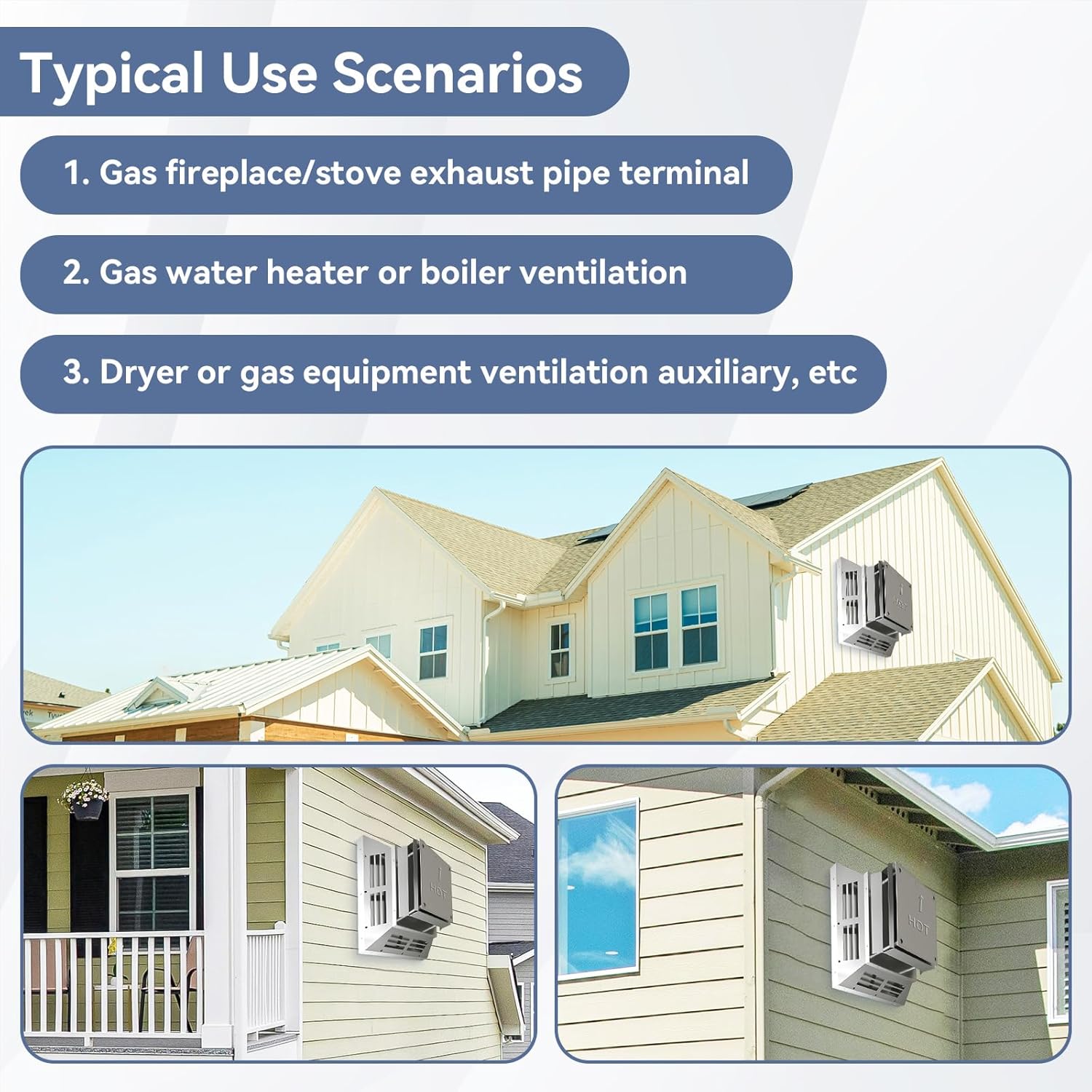 Application: Gas fireplace/stove exhaust pipe terminal, gas water heater or boiler ventilation, dryer or gas equipment ventilation auxiliary; must comply with local distance regulations