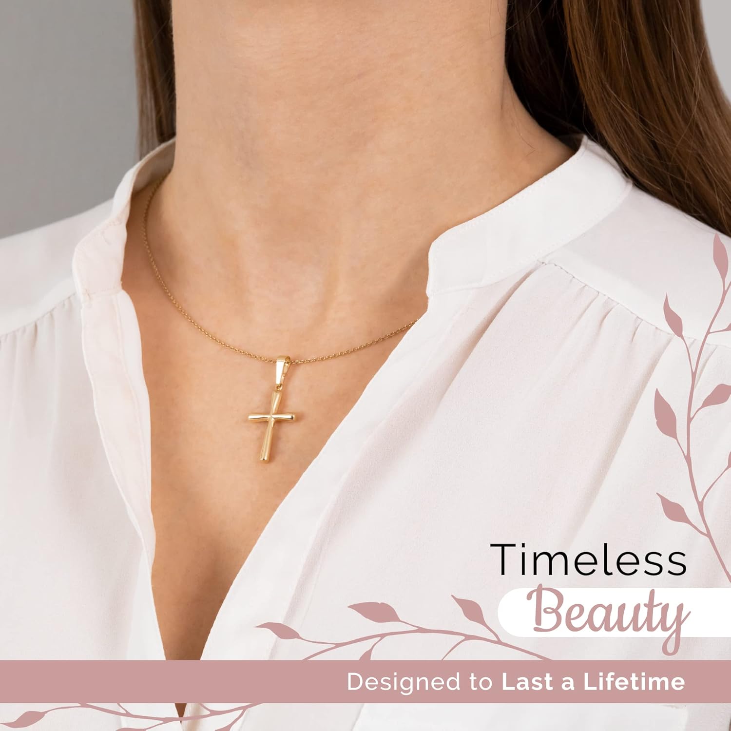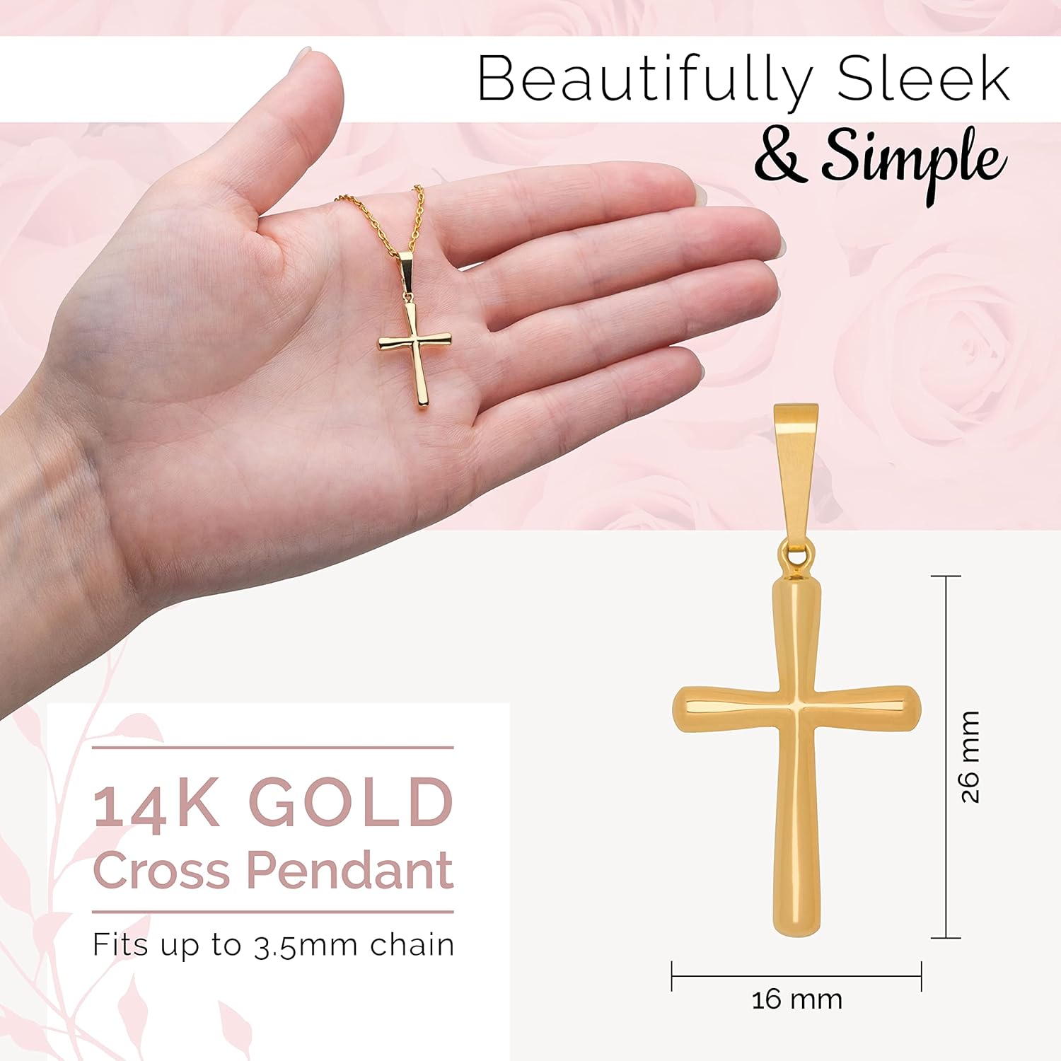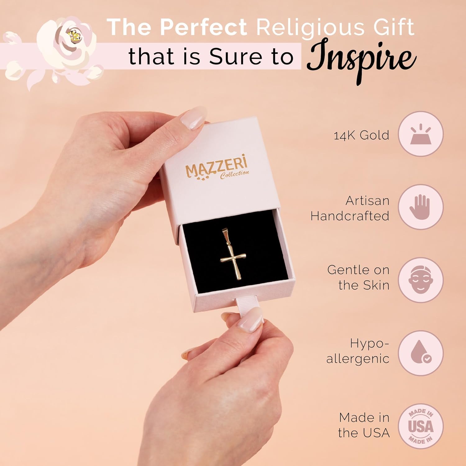 14k Gold Cross Pendant, Hypoallergenic Gold Religious Charms for Men and Women, Handcrafted in the USA