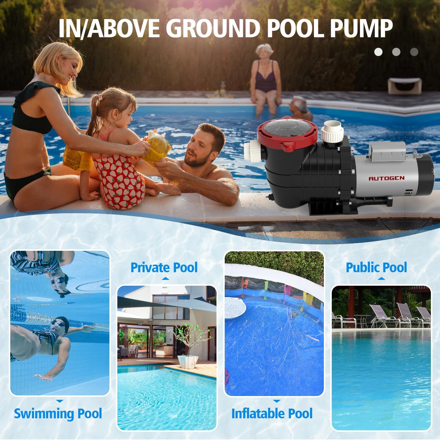 - AUTOGEN swimming pool pump products have passed UL certification and meet international safety standards, the ground wire provides additional safety protection, and built-in automatic overheating and overload protection to ensure safe use. Please fill the pump with water when using it for the first time to prevent the motor from overheating. Please note that due to motor restrictions required by CEC, this product cannot be used or sold in California.