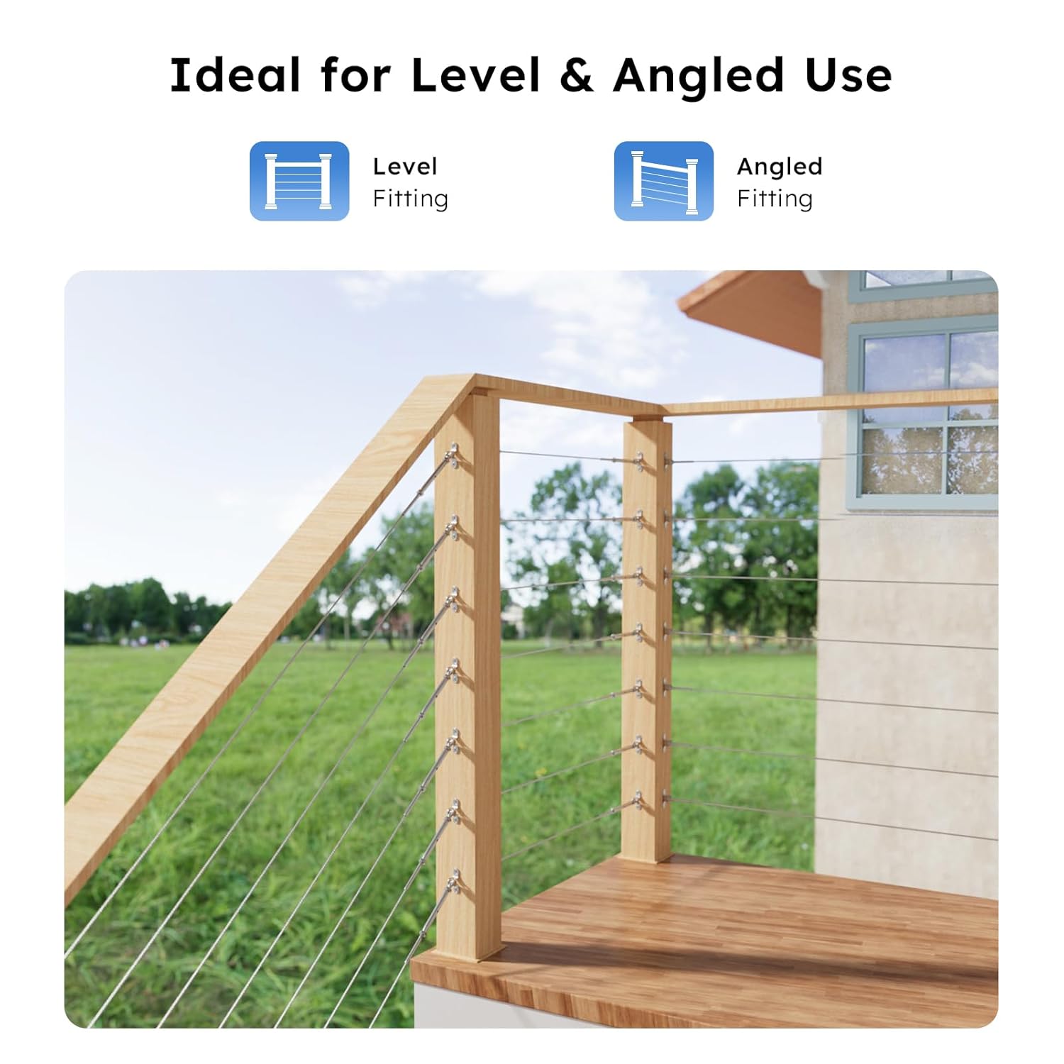 Precision 5/32\' Cable Compatibility: Specially designed as a cable railing kit for 5/32\' stainless steel cables, our system ensures seamless tension control. The 180° angle-adjustable base provides flexibility to align with deck slopes, staircases, or irregular architectural layouts