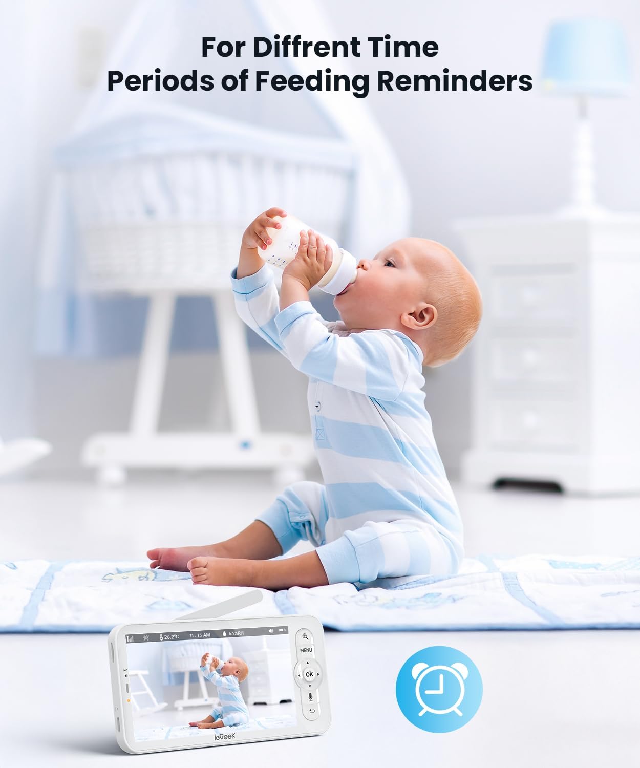 Smart Alerts and Auto-Tracking – The video baby monitor`s advanced cry/sound detection, motion alerts, and auto-tracking features (350° pan, 60° tilt, and 4x zoom) ensure you never miss a moment. It also includes a danger zone alert and feeding reminders for extra care.