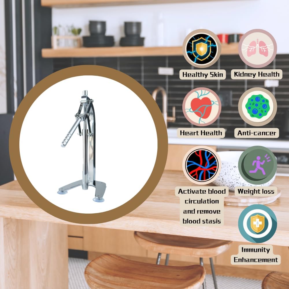 MaterialThis tabletop heavy duty manual juicer is made of stainless steel with a mirror grain finish for a beautiful and stylish appearance.