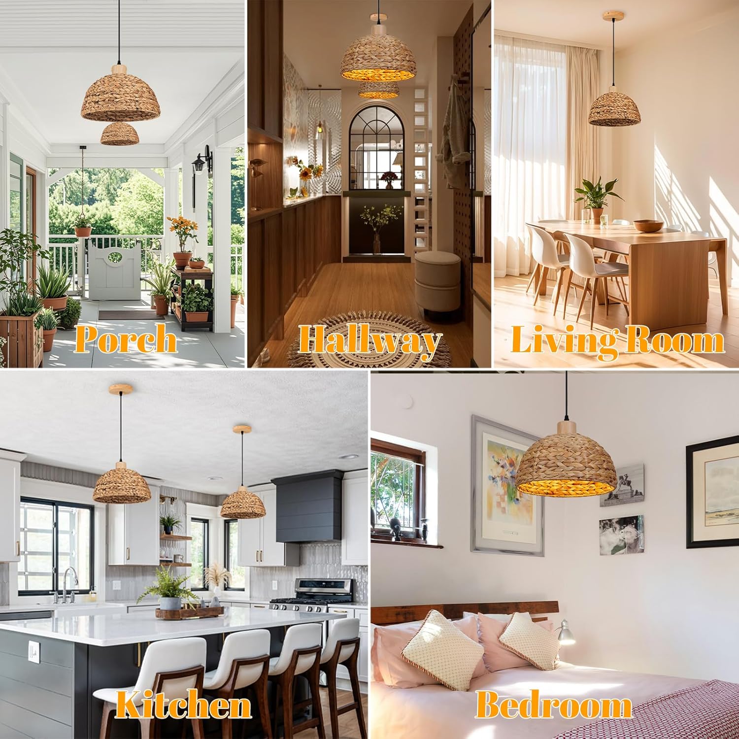 [Wide Application] This rattan pendant lights kitchen island is made of delicate rattan woven. It is ideal match for dining room light fixture, bedroom chandeliers, kitchen island over table lights, hallway entrance hanging light fixture with farmhouse, rustic and boho style.