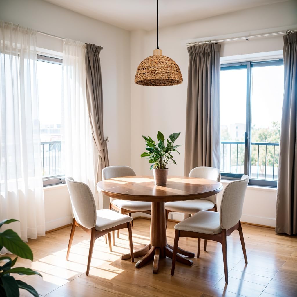 [12 Inch Woven Pendant Light] Giltnio boho pendant light is made of hand-woven rattan, with rattan light shades that diffuse warm halos, making it suitable for cozy corners.It perfectly blends the warmth of farmhouse style with boho flair, and this space saving design creates visual harmony in compact living areas.