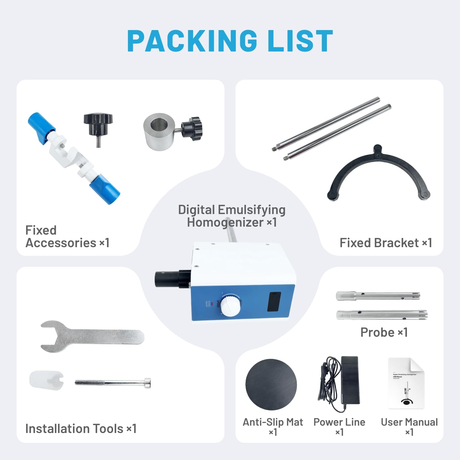High speed: The homogenizer emulsifier has high speed and powerful performance. The maximum speed can reach 20000 rpm for efficient emulsification