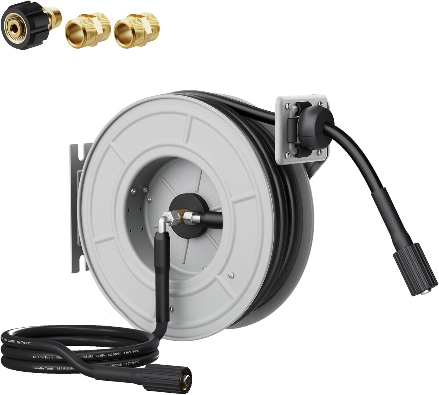 Giraffe Tools Retractable Pressure Washer Hose Reel, Power Washer Reel, 40ft, 3200psi