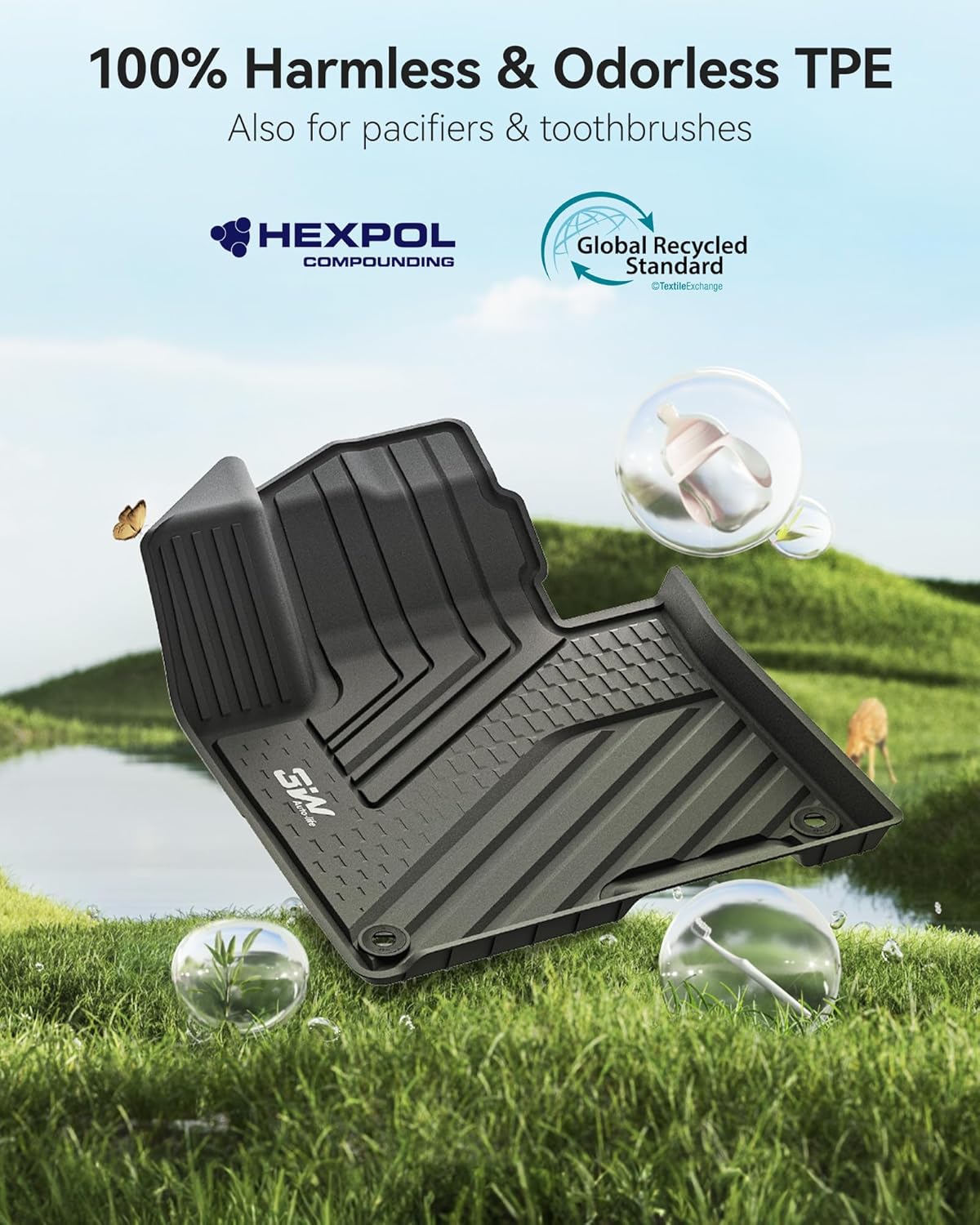ODORLESS AND NON-TOXIC: The floor liners are made with non-toxic and odorless TPE material. No foul smell will be produced even in high temperature. Bring you and your families a safer and more comfortable interior car environment.
