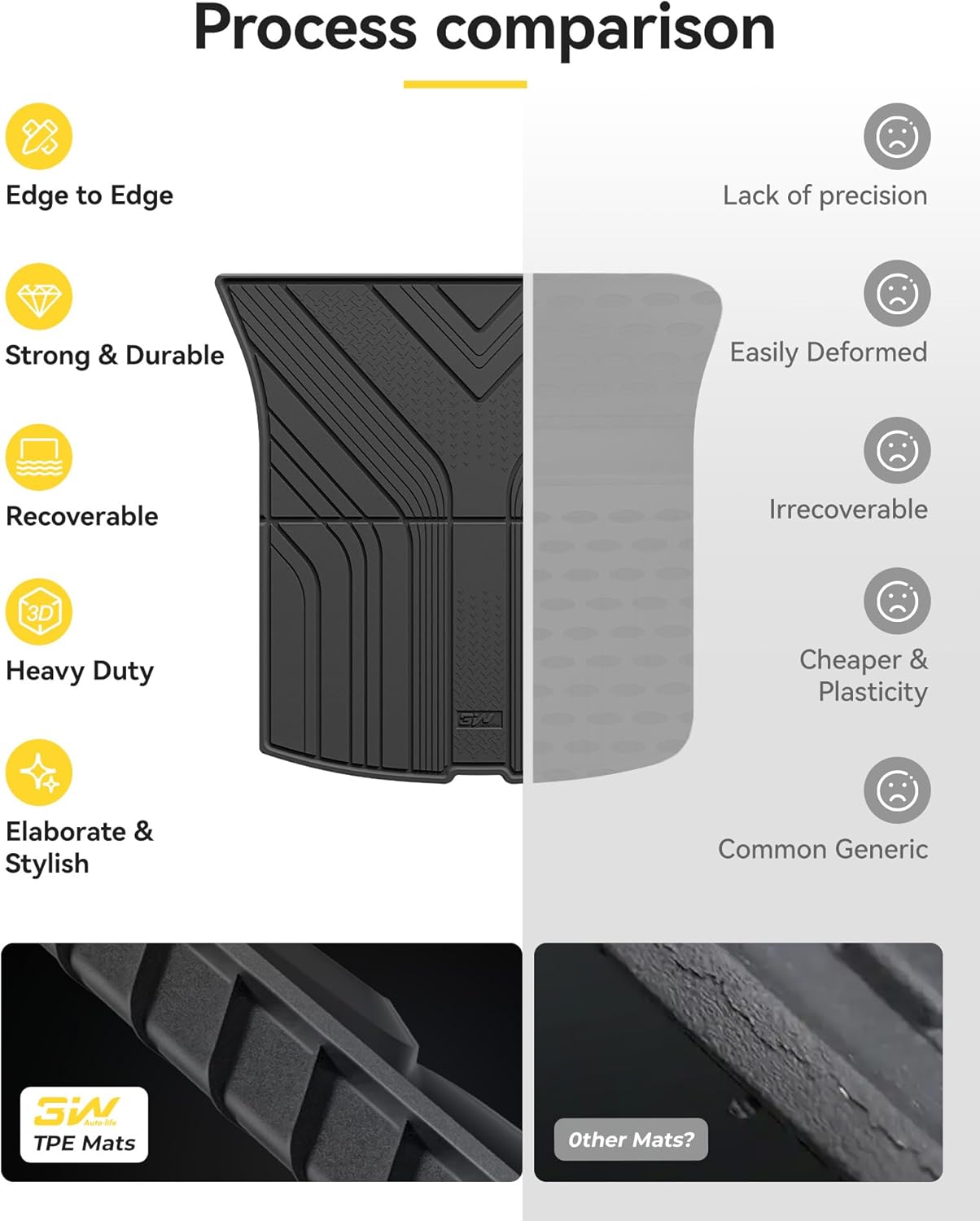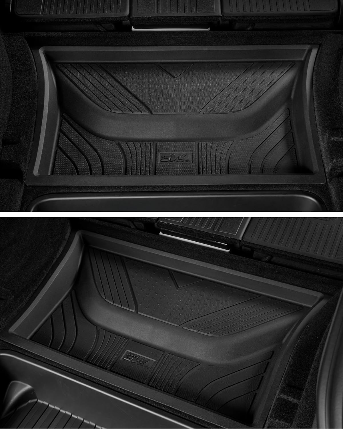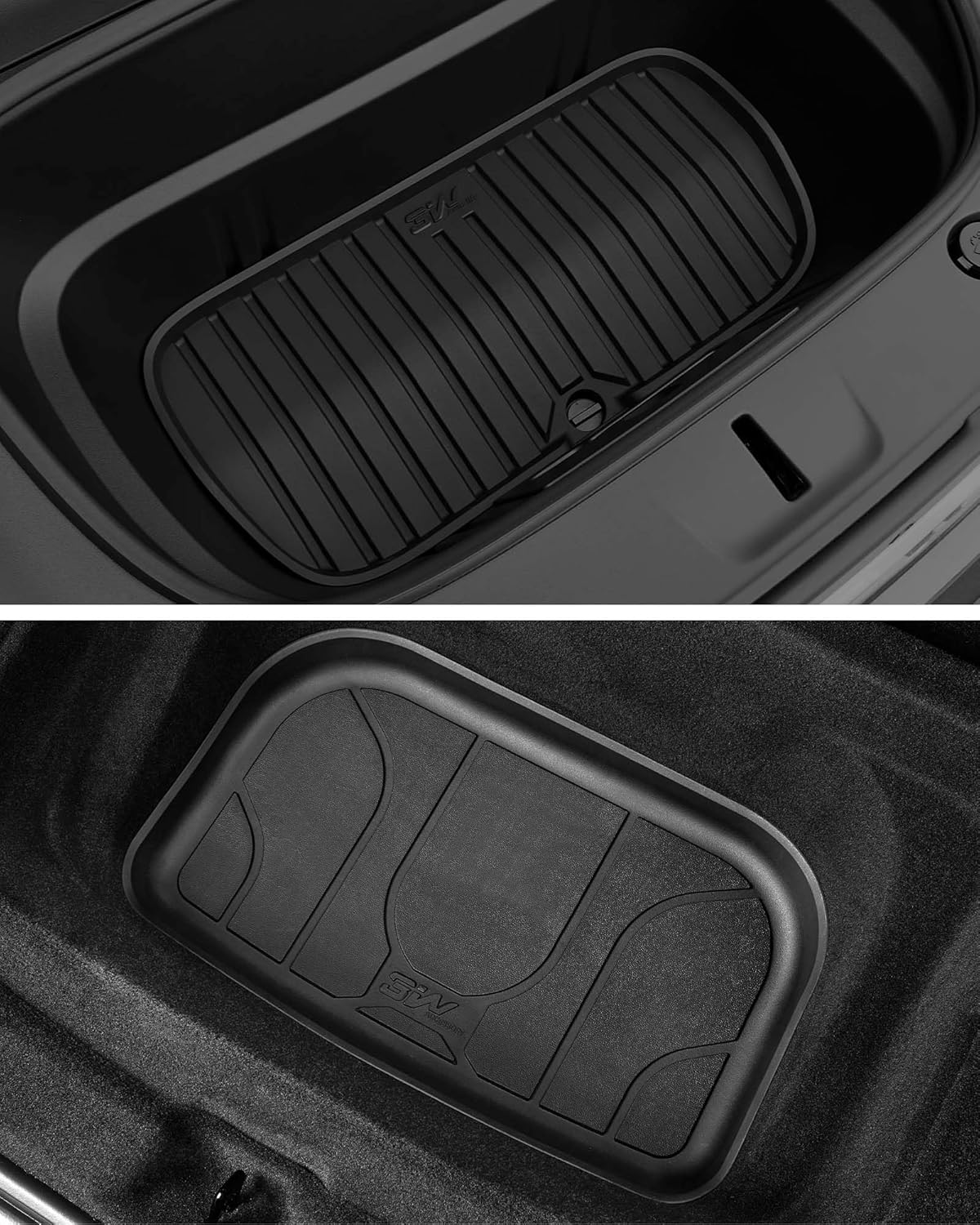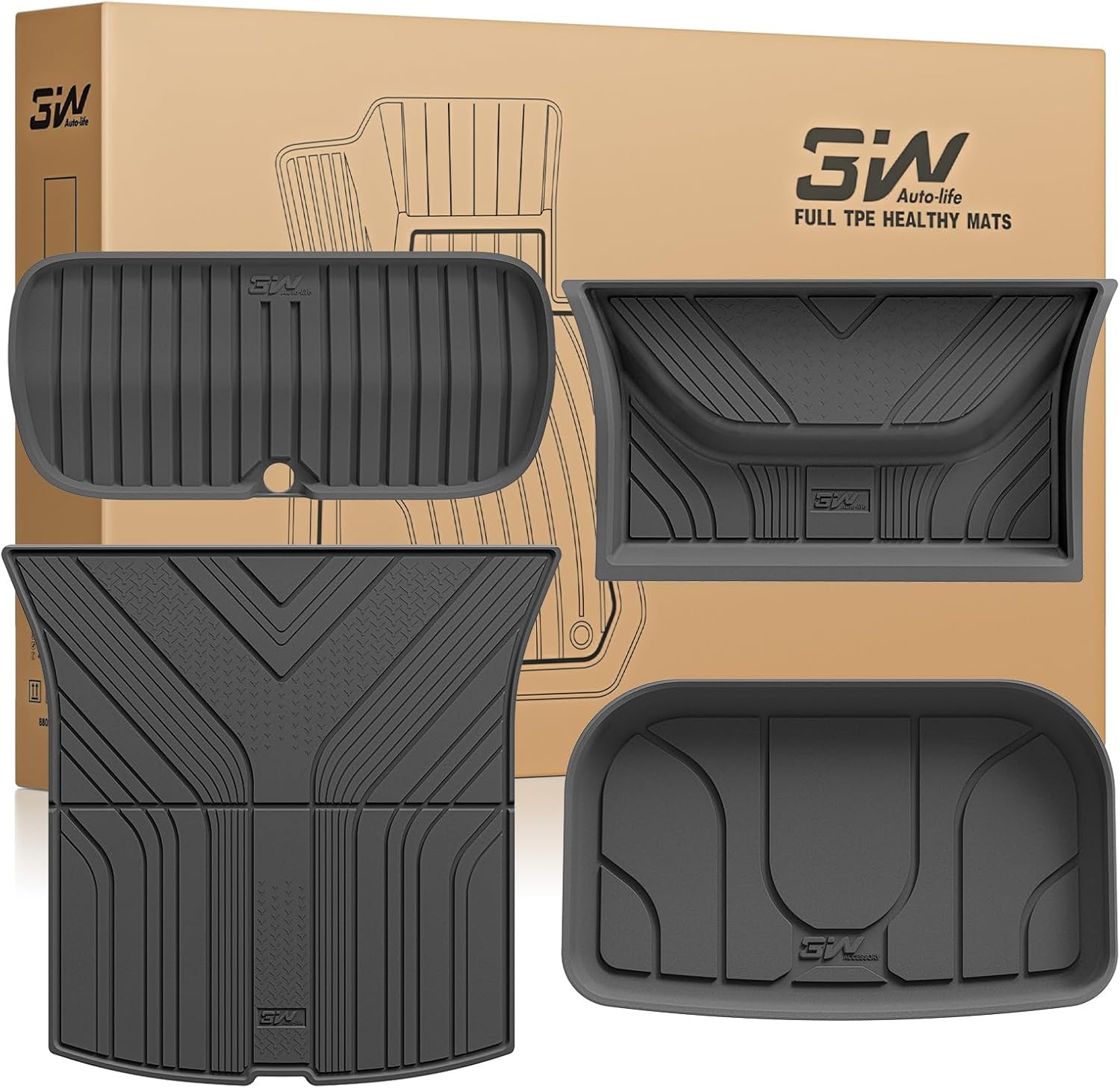 PERFECT FIT: 3W floor mats are laser-measured to maximize coverage and protection from edge to edge for 2025 2026 Tesla Model Y Juniper. This set includes front trunk liner& rear cargo mat & lower storage mat