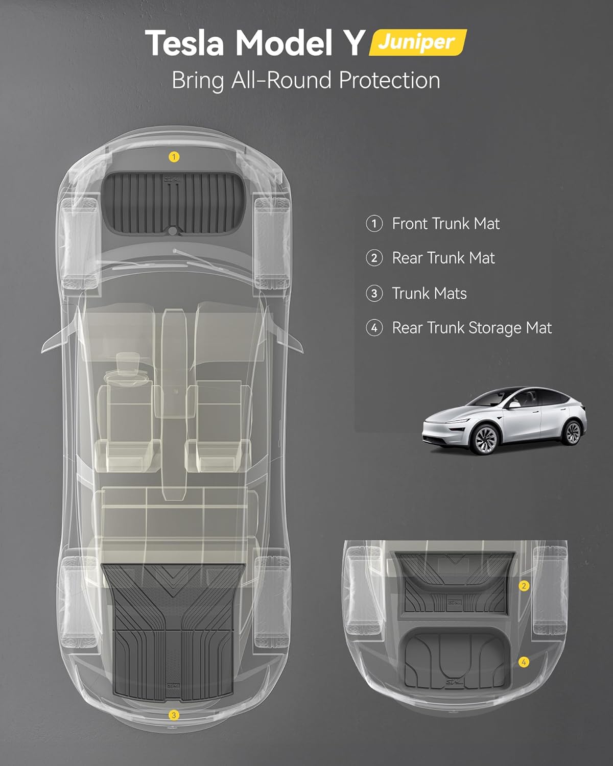 3W 2025 2026 Tesla Model Y Juniper Cargo Mat with Front and Rear Trunk Mats Cargo Liners Anti-Slip TPE All Weather