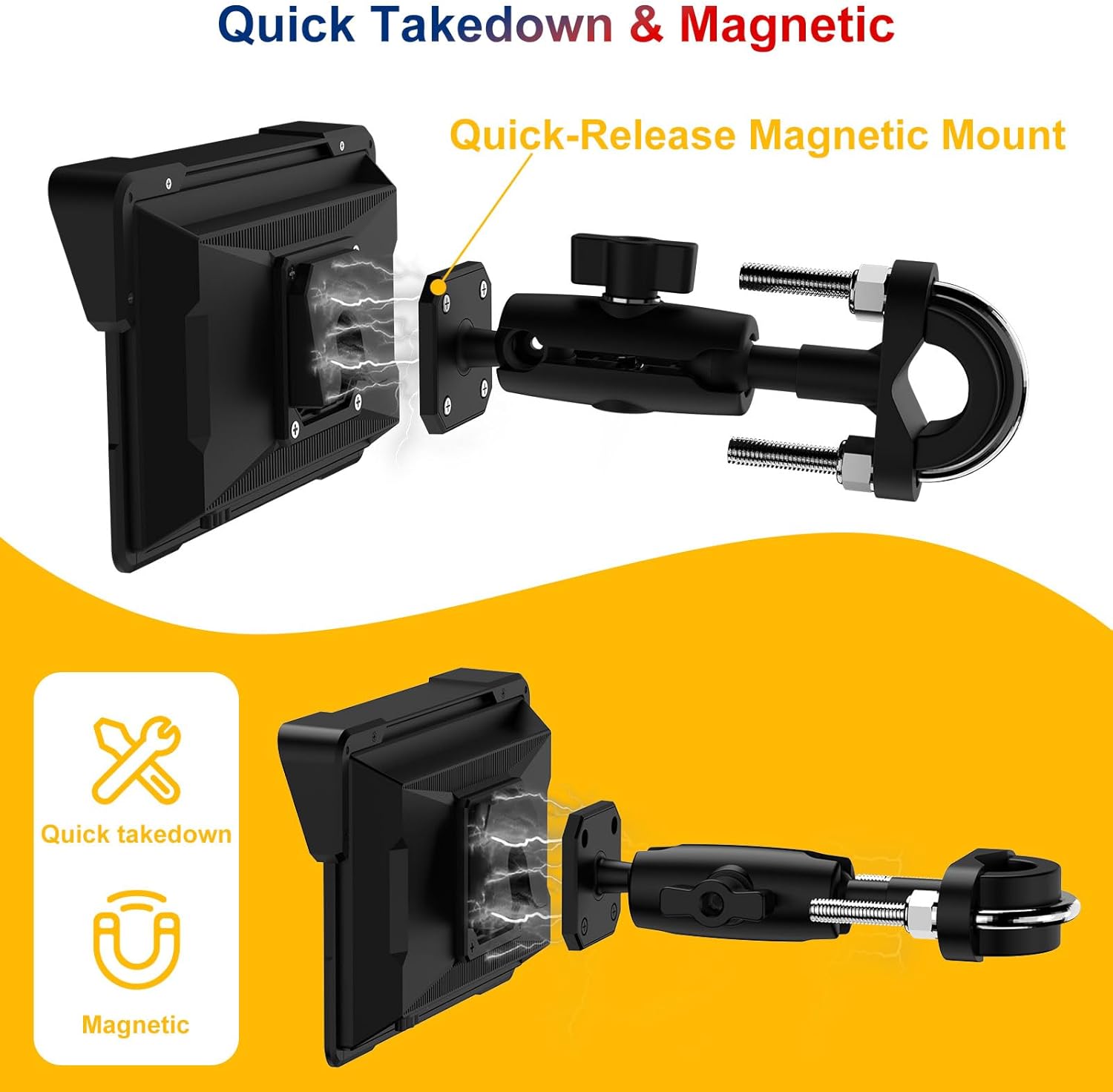 Quick-Release Magnetic MountOur physical anti-theft solution lets you easily remove and take the main unit with you when leaving your motorcycle unattended. The quick-release magnetic mount offers both security and convenience, keeping your detachable capacitive touchscreen securely under your control at all times.