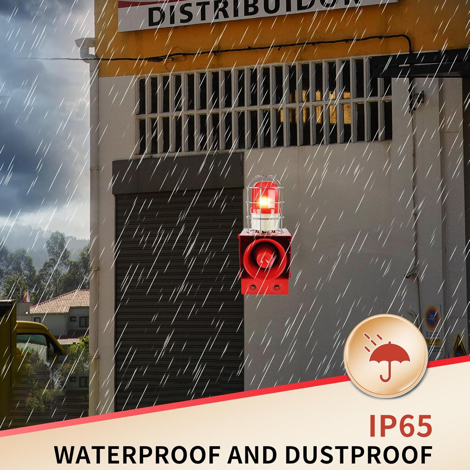 Outdoor Alarm Siren: Loud alarm sound + LED flashing light, sound and light synchronization warning, ensures rapid attention in darkness or harsh weather conditions
