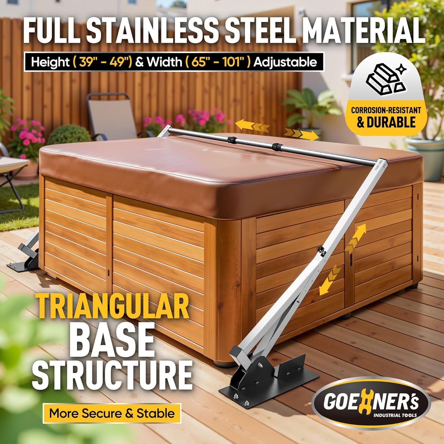 Hot Tub Cover Lift, Stainless Steel Spa Cover Lifter for hot tub, Height 39'-49' Width 71'-106' Adjustable