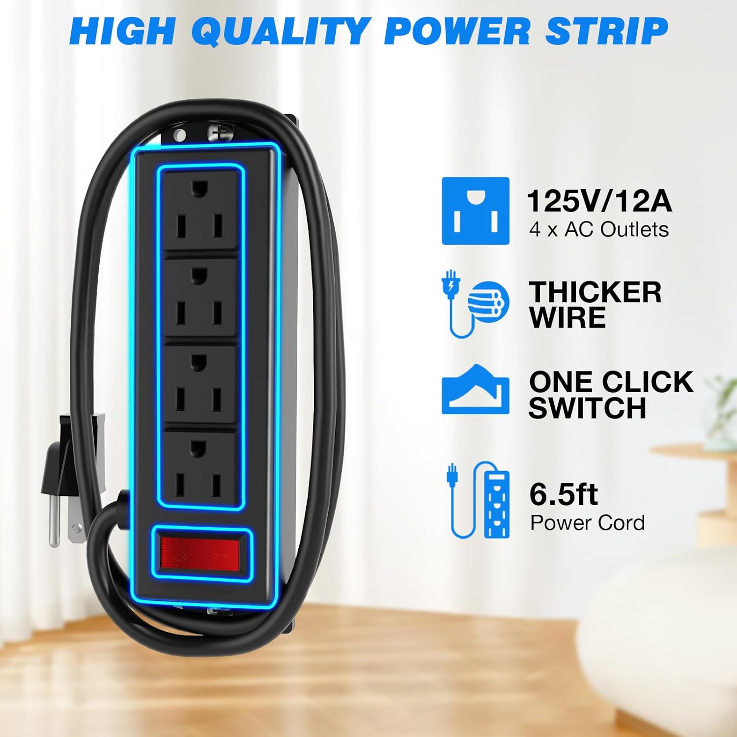 MOBILE TV CART WITH POWER OUTLET - SAFETY & CONVENIENCE INTEGRATED: This rolling TV stand features a built-in power strip with a 6.5 foot heavy-duty extension cord (16 AWG pure copper), delivering 12A current capacity for stable multi-device charging. Its 4 AC outlets support simultaneous power supply to media equipment, while the one-touch safety switch instantly cuts power when idle, preventing accidental activation by children. This design ensures both device security and family safety.